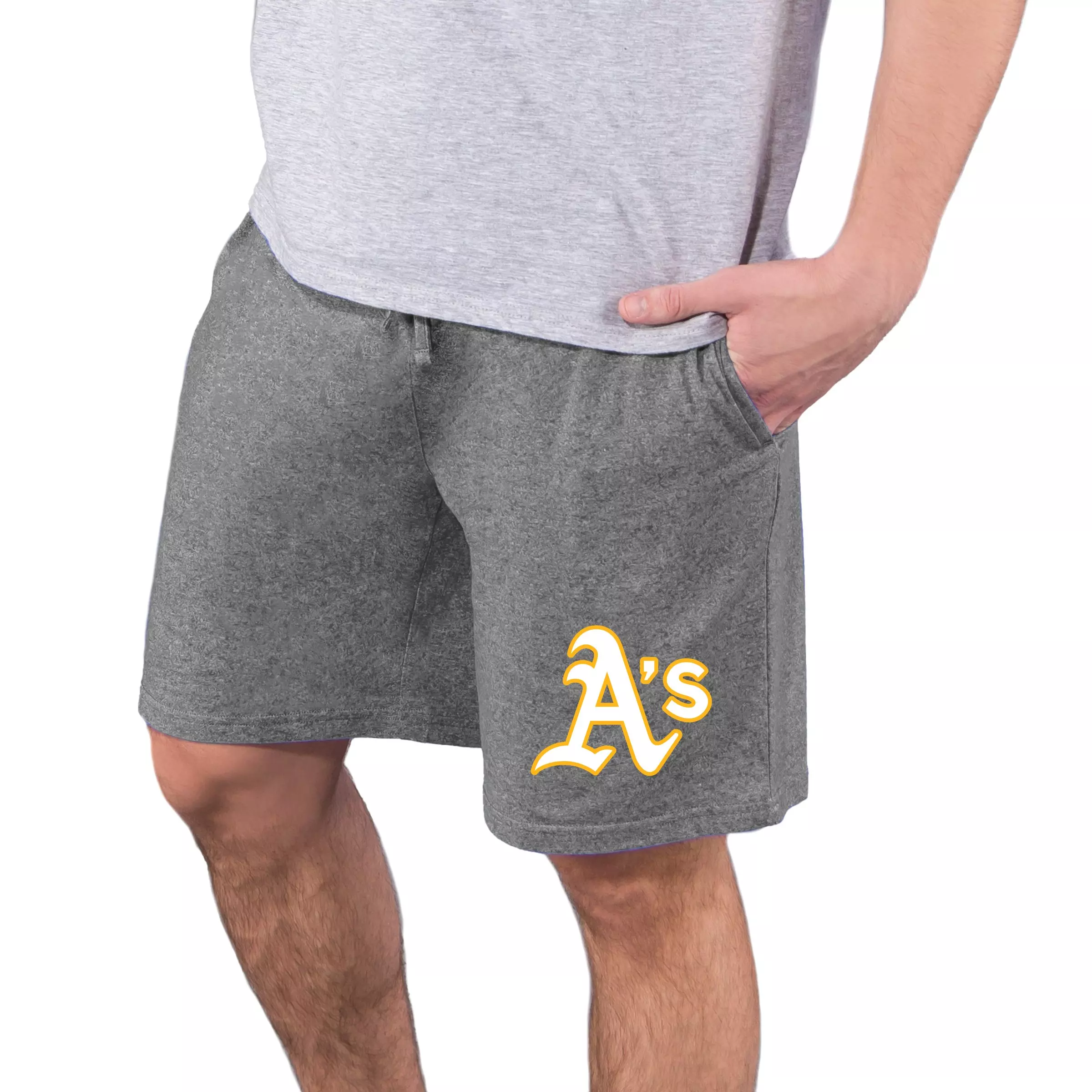 Show support for your team in style and comfort with the College Concepts Men'sOakland Athletics Quest Shorts - Charcoal. Featuring side seam pockets and the left leg graphic, these shorts can hold your phone and keys as you’re showing pride for your team.Features