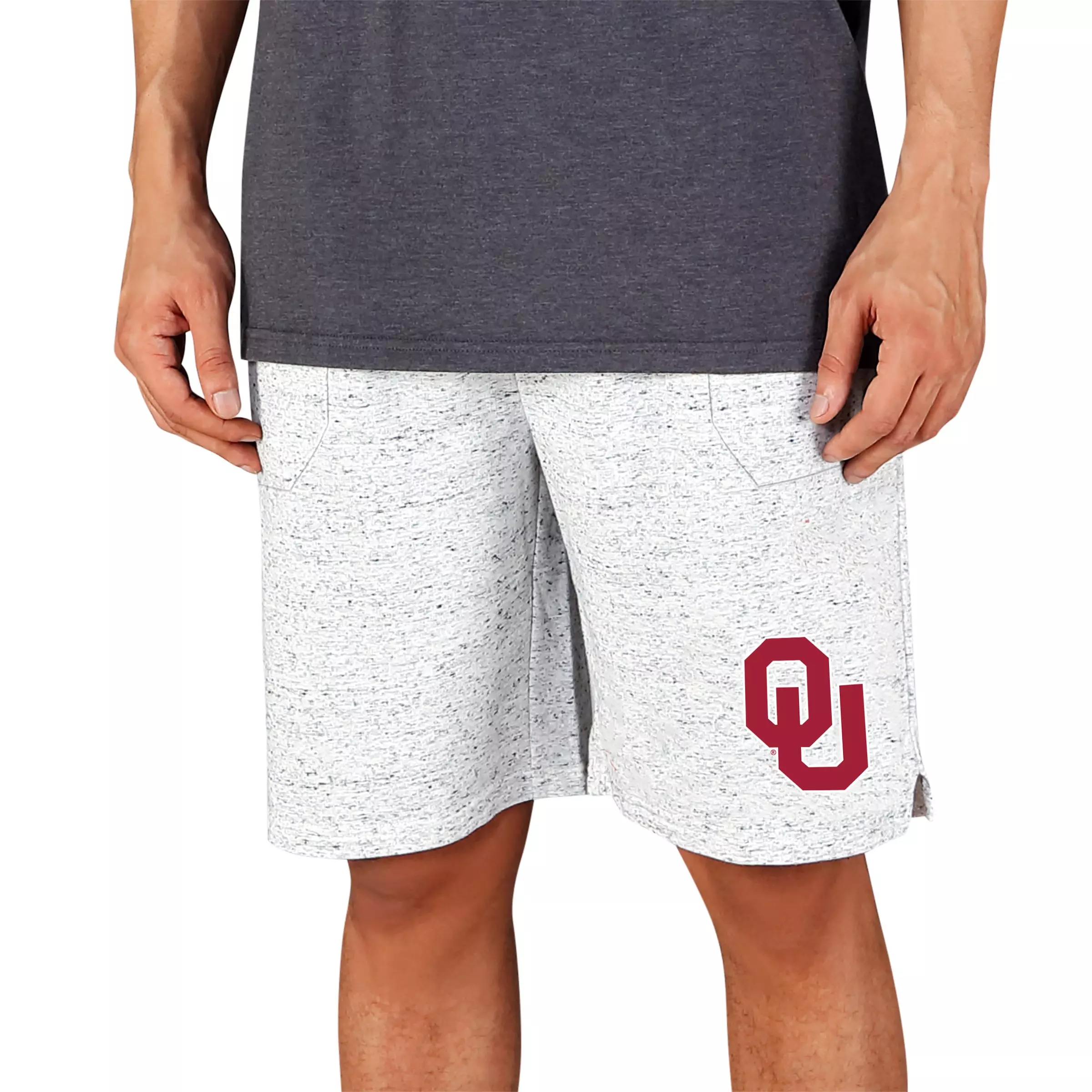 These College Concepts Men's Oklahoma Sooners Throttle Shorts - White/Charcoal combine loungewear with supporting your favorite team. The side slip pockets and drawstring with elastic waist provide comfort while the printed graphic puts your team spirit out on display for everyone to see.Features