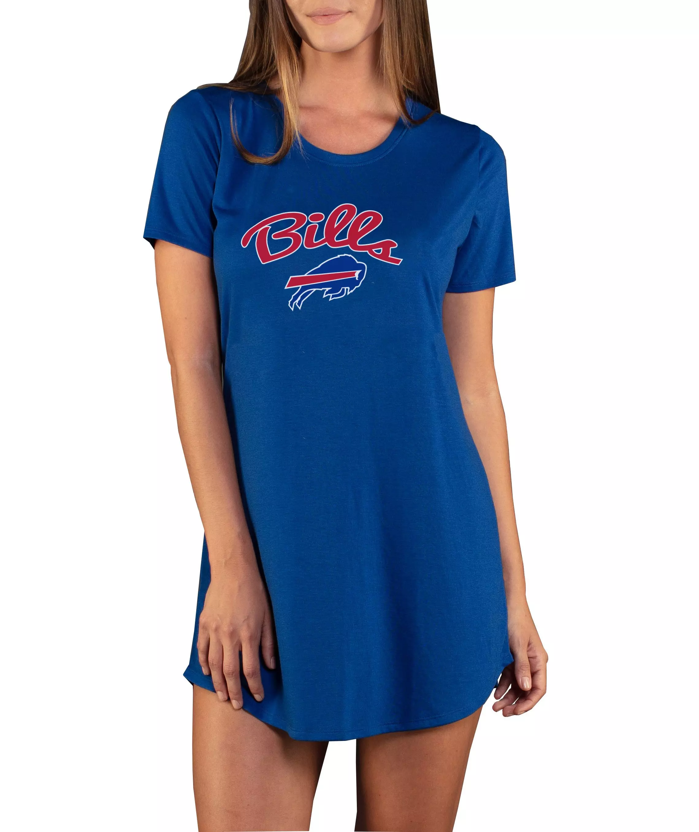 The College Concepts Women's Buffalo Bills Marathon Nightshirt lets you display your College Pride even at bed time with this Marathon Nightshirt. The team graphic screen printed on the front lets everyone know who you root for, and the polyester and rayon jersey blend fabric is soft to the touch.