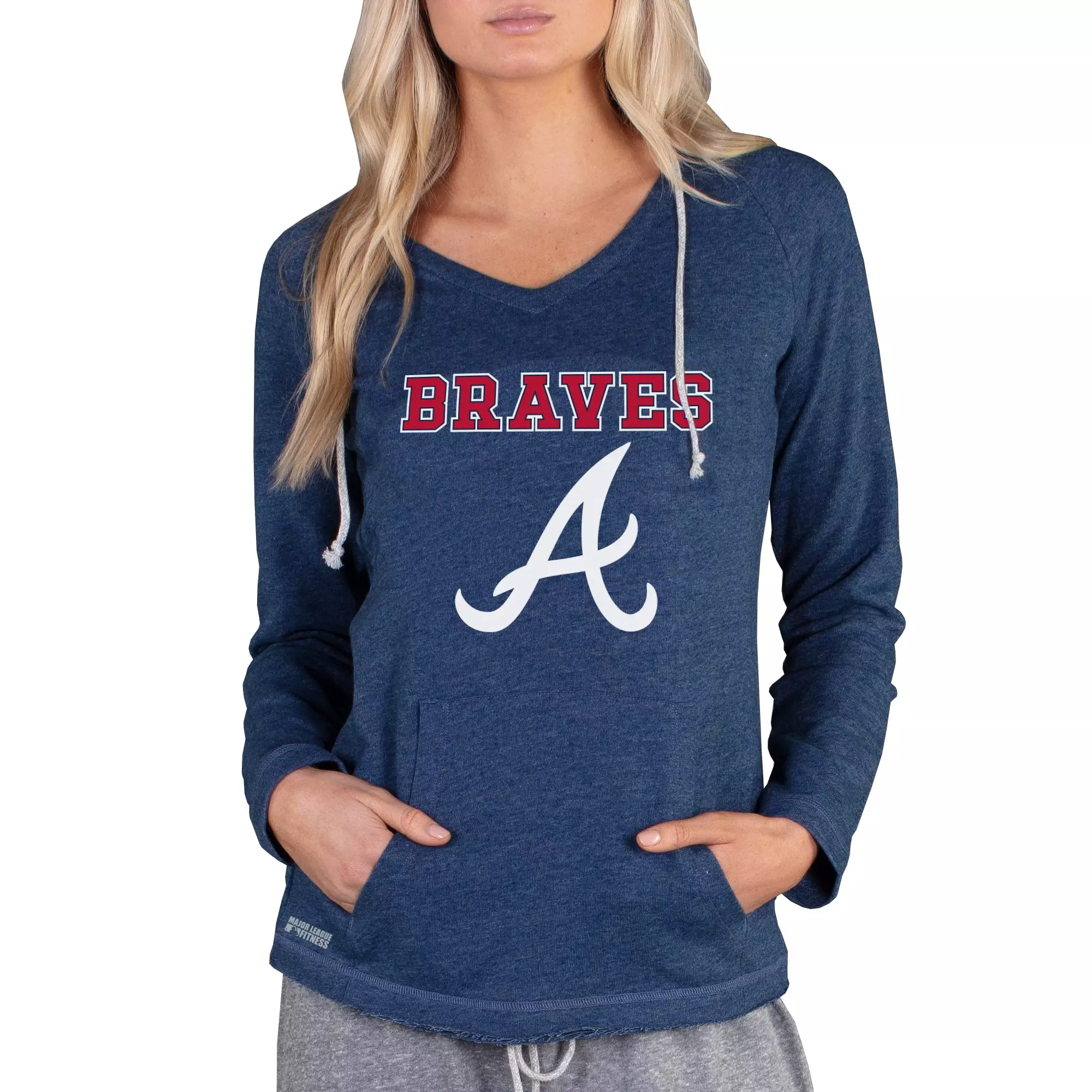 College Concepts Women's Mainstream Terry Long Sleeve Atlanta Braves Hoodie Top -Navy