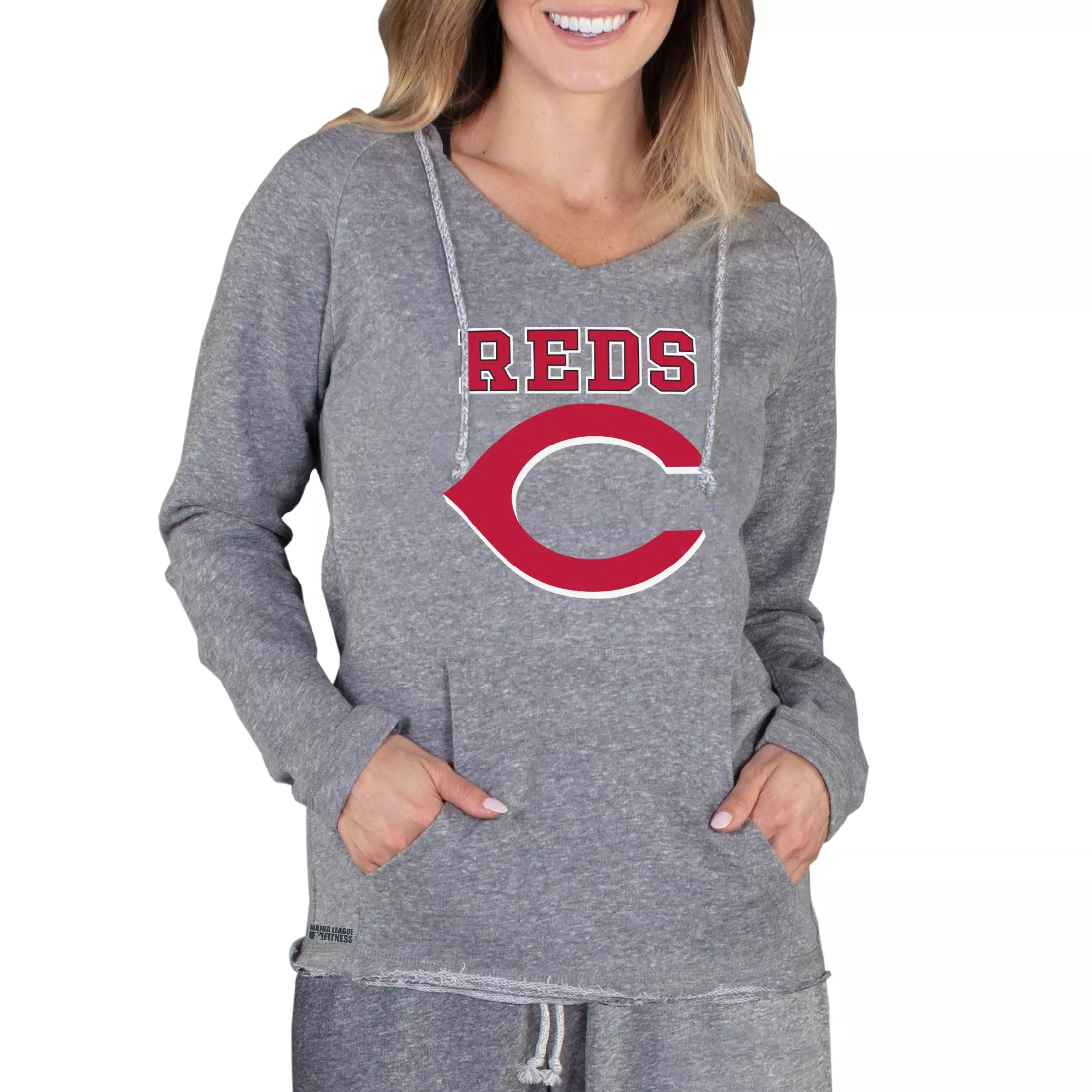 College Concepts Women's Mainstream Terry Long Sleeve Cincinnati Reds Hoodie Top -Grey