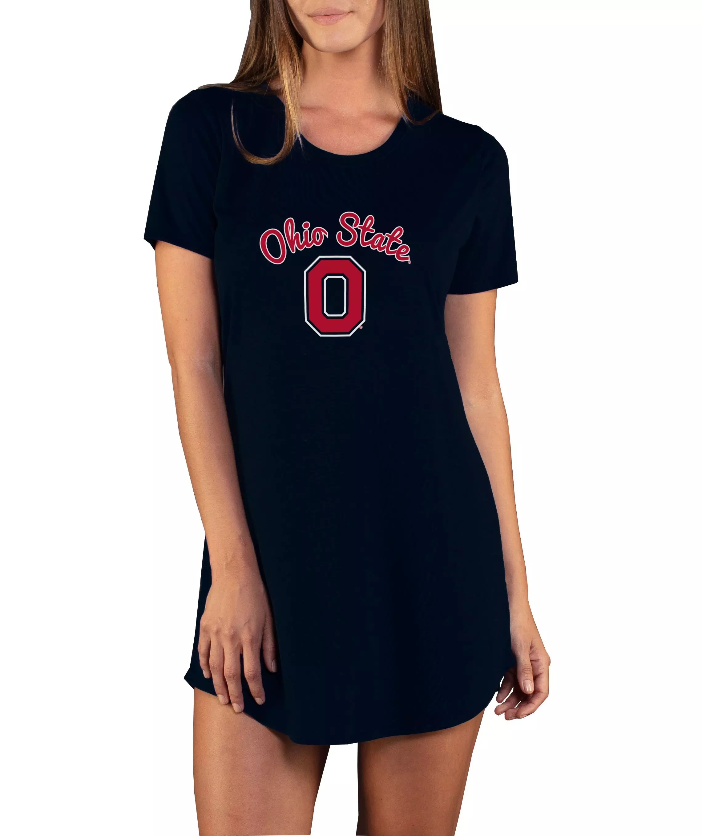 The College Concepts Women's Ohio State Buckeyes Marathon Nightshirt lets you display your College Pride even at bed time with this Marathon Nightshirt. The team graphic screen printed on the front lets everyone know who you root for, and the polyester and rayon jersey blend fabric is soft to the touch.