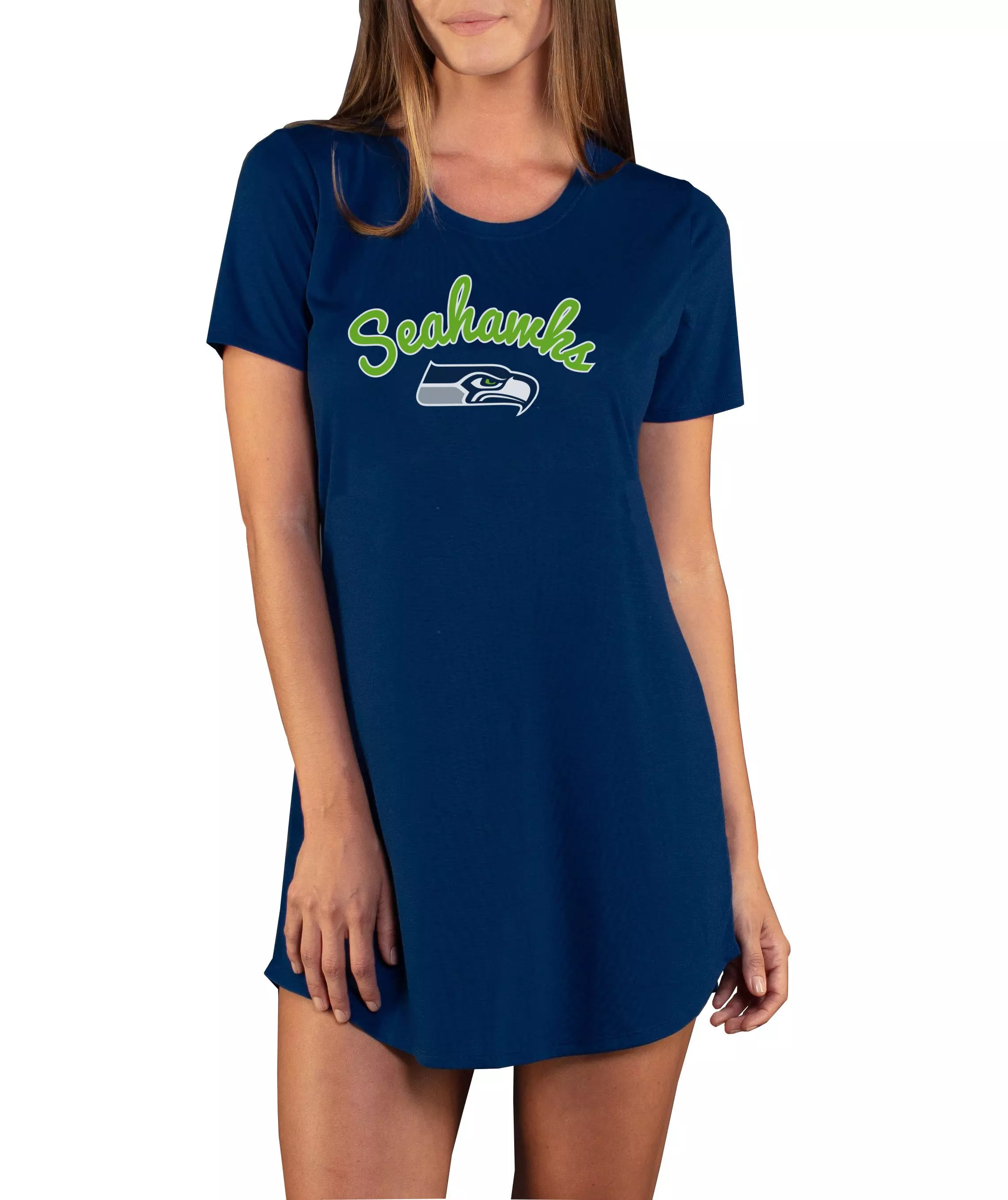 The College Concepts Women's Seattle Seahawks Marathon Nightshirt lets you display your College Pride even at bed time with this Marathon Nightshirt. The team graphic screen printed on the front lets everyone know who you root for, and the polyester and rayon jersey blend fabric is soft to the touch.