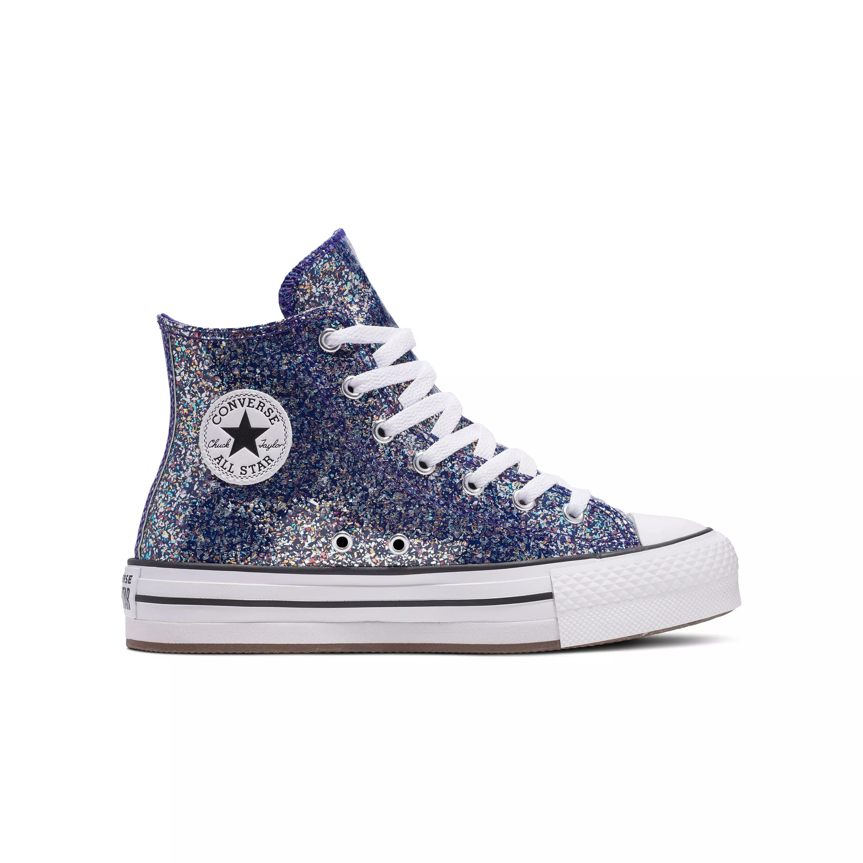 Elevate every step with the Converse Chuck Taylor All Star Eva Lift "Shinefetti" Grade School Girls' Shoe. This glitter-covered design adds sparkle any time, any place, and the boosted outsole amps up every step.