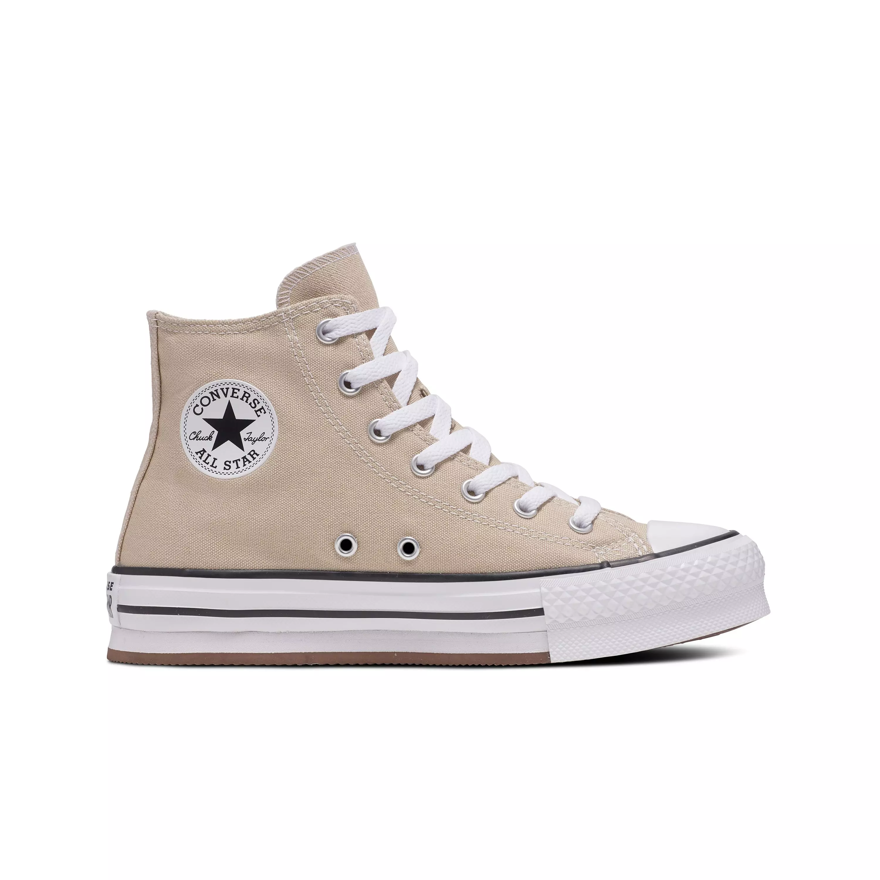 UP AND AWAYLittle ones constantly on the go need a style that can keep—these Converse Chuck Taylor All Star Lift "Nutty Granola/White/Black" Grade School Girls' Shoes rise to occasion. Hype up their independence with classic laces so they can slip on, lace up, and kick their imagination into overdrive. Plus, fresh new colors pair with any look.