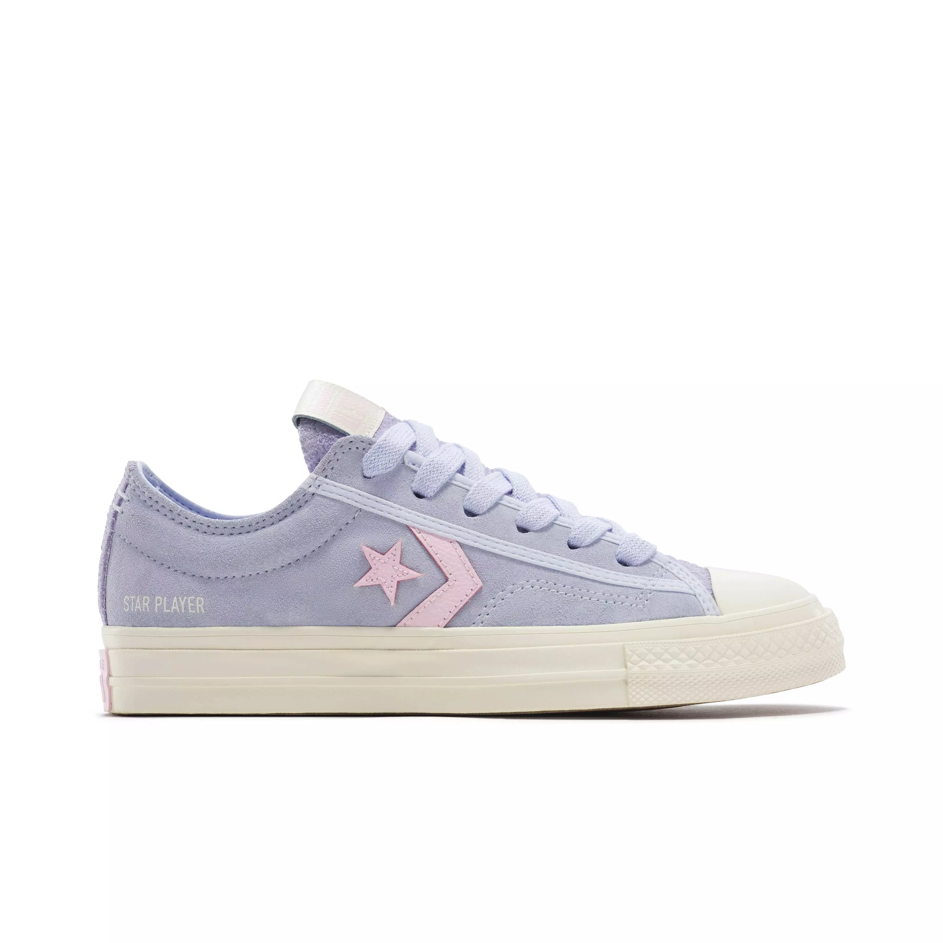 The Converse Star Player 76 "Blueberry Ice/Sugar Berry" Women's Shoe reinvents the iconic silhouette with suede overlays and vibrant colors. Metal eyelets and contrasting stitching accent the design while durable rubber sole ensures reliable traction on pavement.