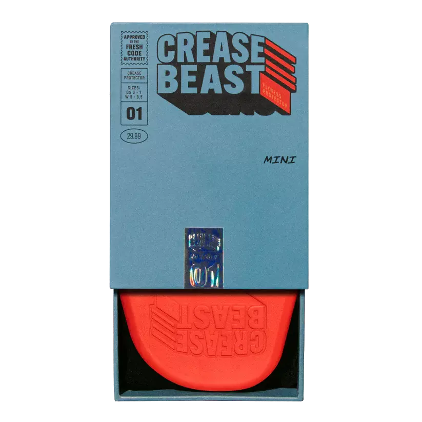 The Crease Beast Mini Standard Protector fits kids (GS) sizes 3.5-7 and women’s sizes 5-8.5. It features an ergonomic foot sleeve crafted from durable nylon-based fabric.