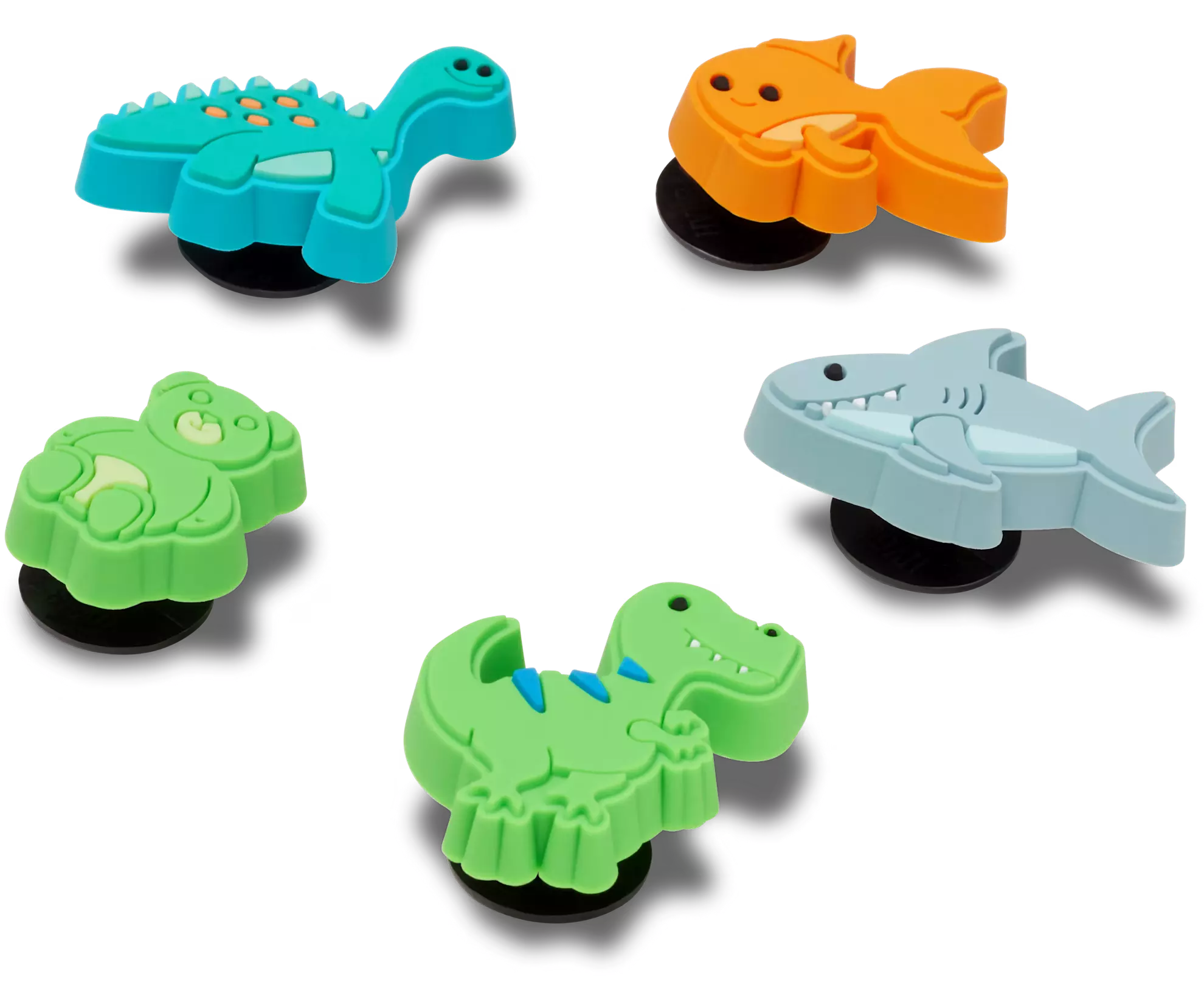 The Crocs Cartoon Animal Jibbitz Charms 5-Pack brings playful energy to clogs, slides, and more. Each charm features a colorful animal design that snaps securely into shoe holes, letting you personalize your footwear with ease. Made with flexible materials, the charms move naturally with each step while resisting fading through repeated wear and washes.