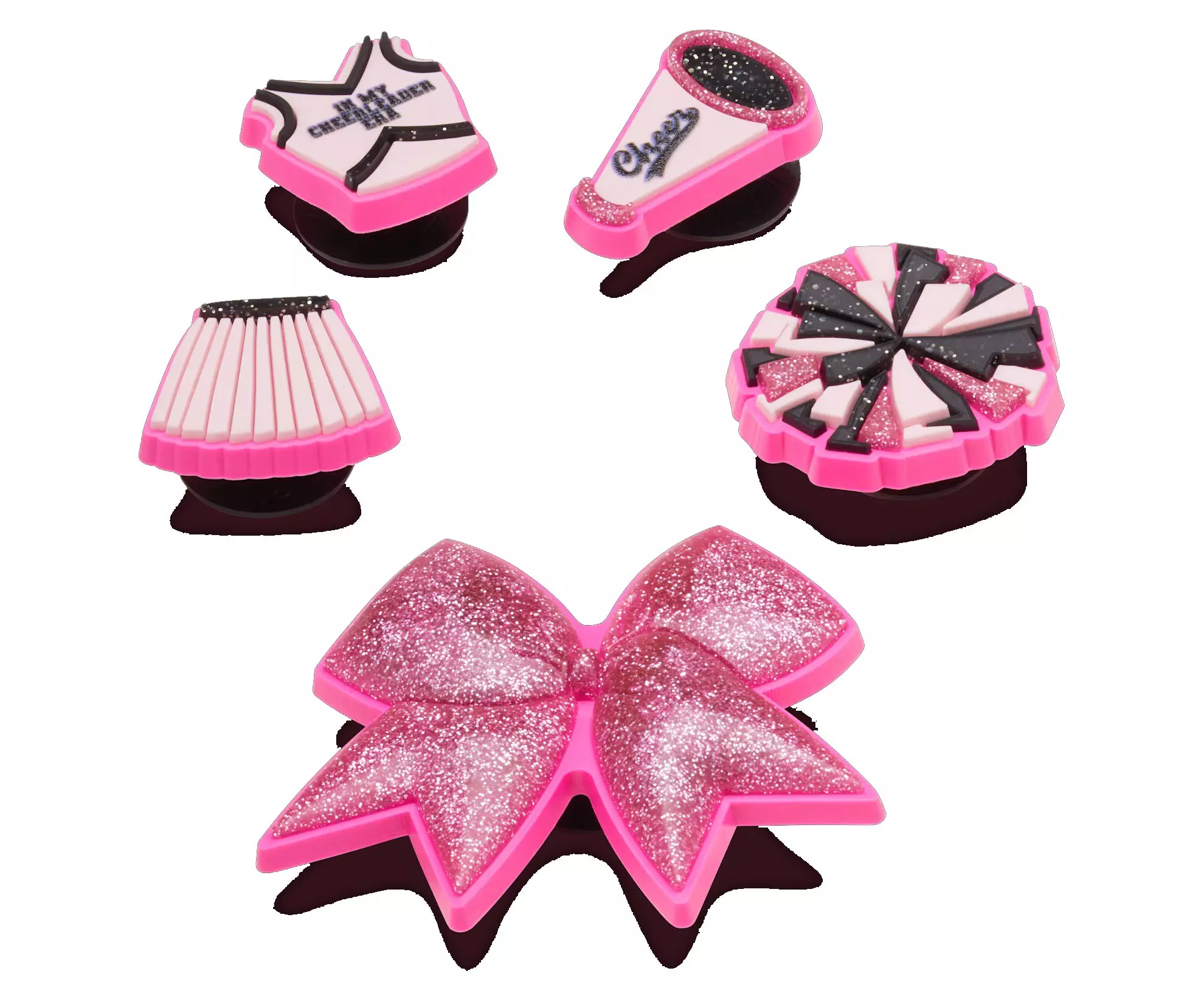 The Crocs Cheerleading Jibbitz Charms 5-Pack brings energy and personality to your footwear. Designed to fit clogs, slides, and other Crocs styles, each charm snaps securely into place and removes just as easily, letting you swap designs in seconds. The set features five cheerleading-inspired designs in bold, vibrant hues that highlight school spirit and individuality without affecting fit or comfort.