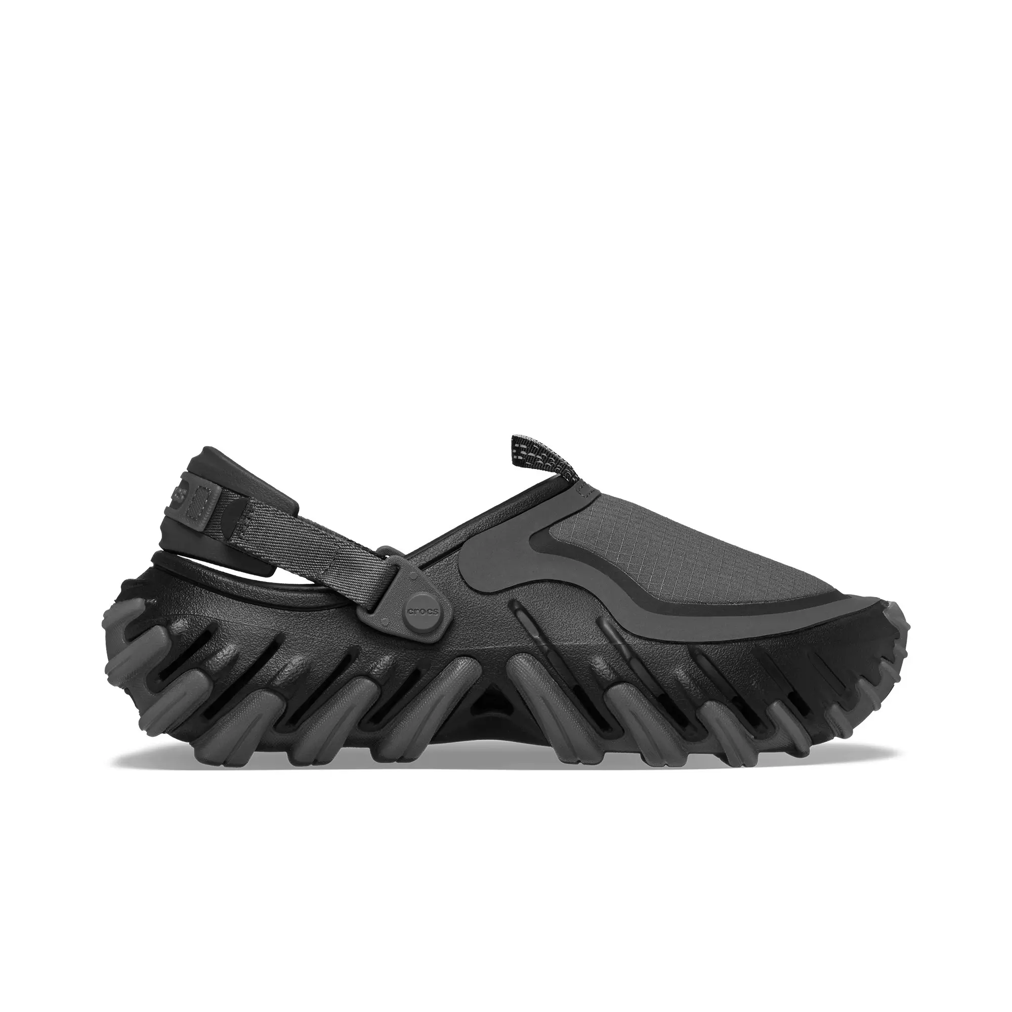 The Crocs Echo RO Ripstop "Black/Grey" Unisex Clog pairs bold, sculpted style with everyday comfort. Fully molded Croslite construction and a LiteRide drop-in footbed deliver lightweight cushioning from street to trail.