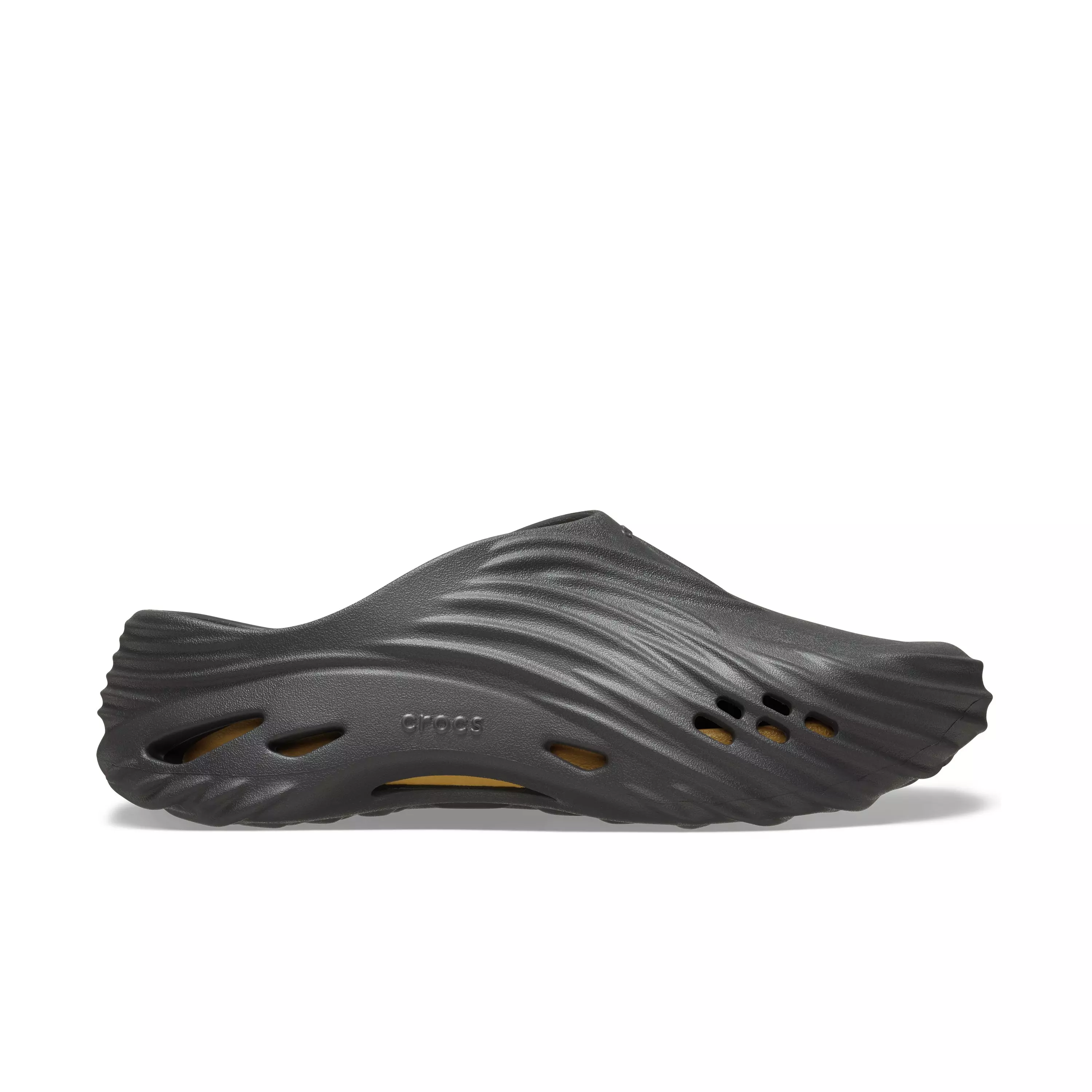 The Echo Collection is for those who want comfort without compromising their look. The Crocs Echo Wave "Black" Unisex Sandal pushes the boundaries further, thinking about footwear in an entirely new way. This future-forward design builds on the Echo Collection, featuring digitally inspired sculpting and texture that covers the upper and seamlessly cascades to the outsole. With bold form and purposeful design, the Echo Wave provides an engaging new aesthetic combined with innovative comfort and utility. The new wave in footwear is here.Features