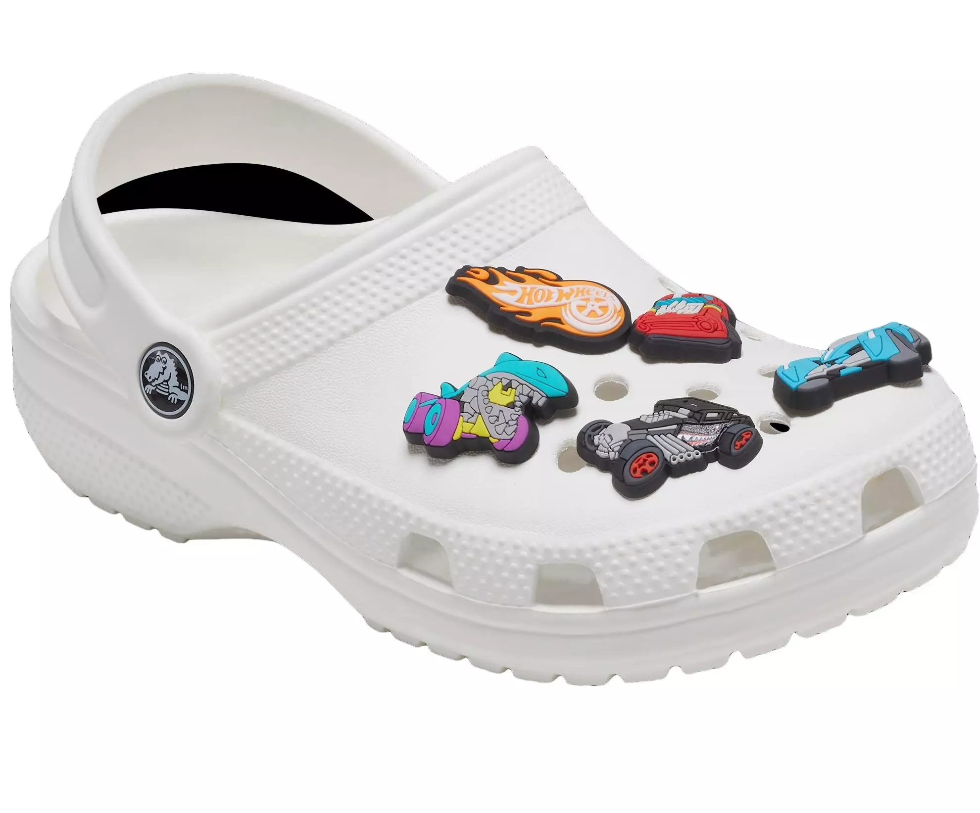 Bring the fast lane to your footwear with the Crocs Hot Wheels Jibbitz Charms-5PK. This themed set lets you mix and match iconic car-inspired designs, popping them into the ventilation holes of your favorite Crocs clogs or slides for instant, playful personality.