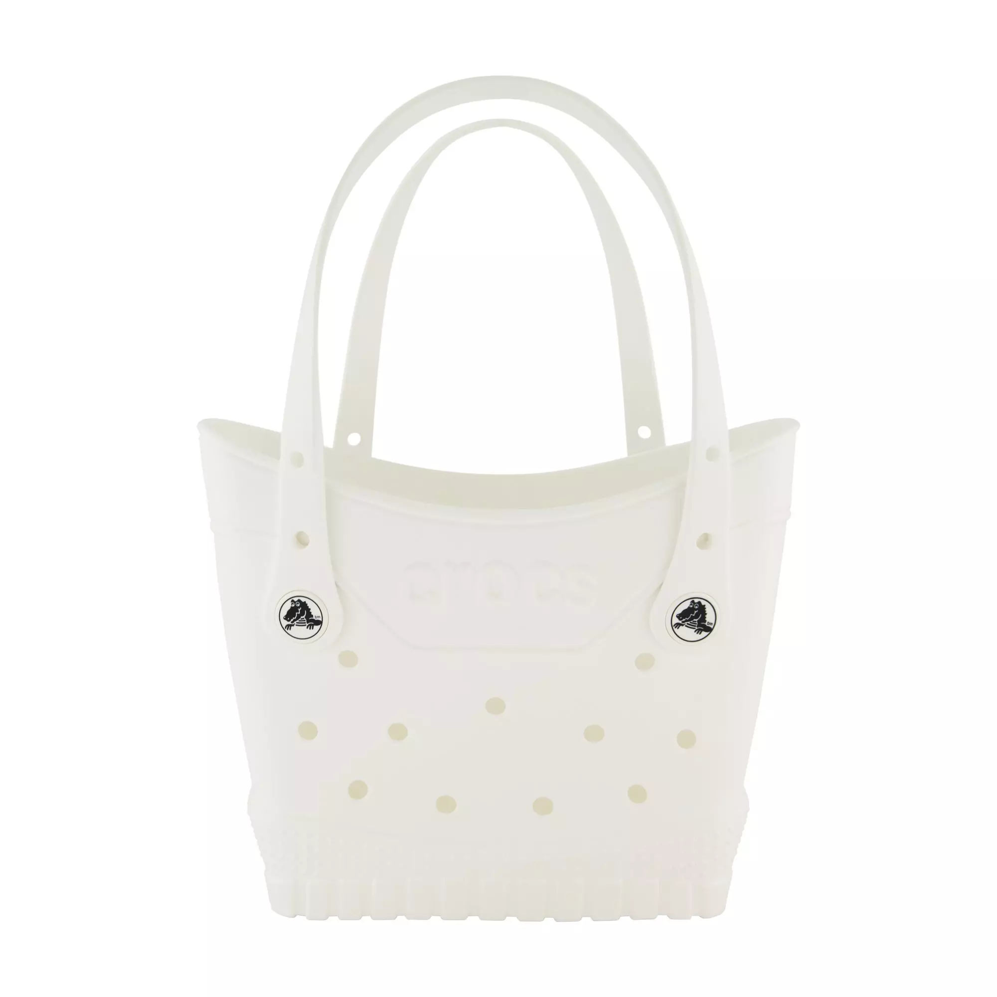 Why get the same old tote bag when you can make this one your own? Introducing the Crocs Classic Small Tote Bag, perfect for carrying items to the pool, beach, park, or anywhere. Like all our totes and bags, it’s durable, spacious, and as Classic as our clogs. The best part? You can add Jibbitz™ charms to make your tote one-of-a-kind, unlike any other on earth. Form, function, a charming personality PLUS your stuff? You’ve got it in the bag. The Crocs Small Tote is durable, spacious, and has Jibbitz holes for personalization. Stylish bag with molded detailing like iconic Crocs shoes.Features