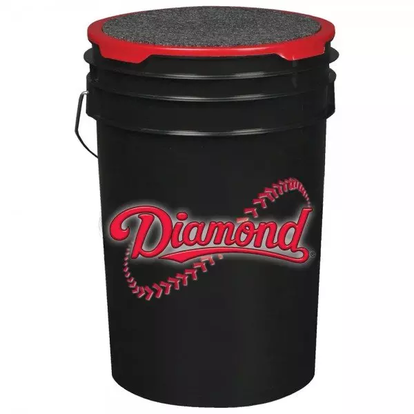 The Diamond BKT B DBX 30 Bucket Combo, Official League, combines durable storage with high-quality training balls. It includes a 6 gallon black Diamond bucket with a padded lid to cushion impact and secure contents.