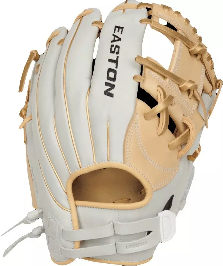 Easton Elite Series 11.5" M. Stuart Infield Softball Glove LHTHit the field with these Elite Series gloves designed by fastpitch defensive guru Morgan Stuart! Featuring game-ready Diamond Pro steerhide leather, this Easton Elite Series 11.5" M. Stuart Infield Softball Glove LHT features the quality and comfort demanded to play at the game's highest levels. This 11.5-inch infield glove comes in a beautiful white and camel colorway with an adjustable wrist opening, giving you a secure fit no matter your hand size or shape. On top of that, the Flex Notch closure system makes for an easy break-in process and effortless closing.