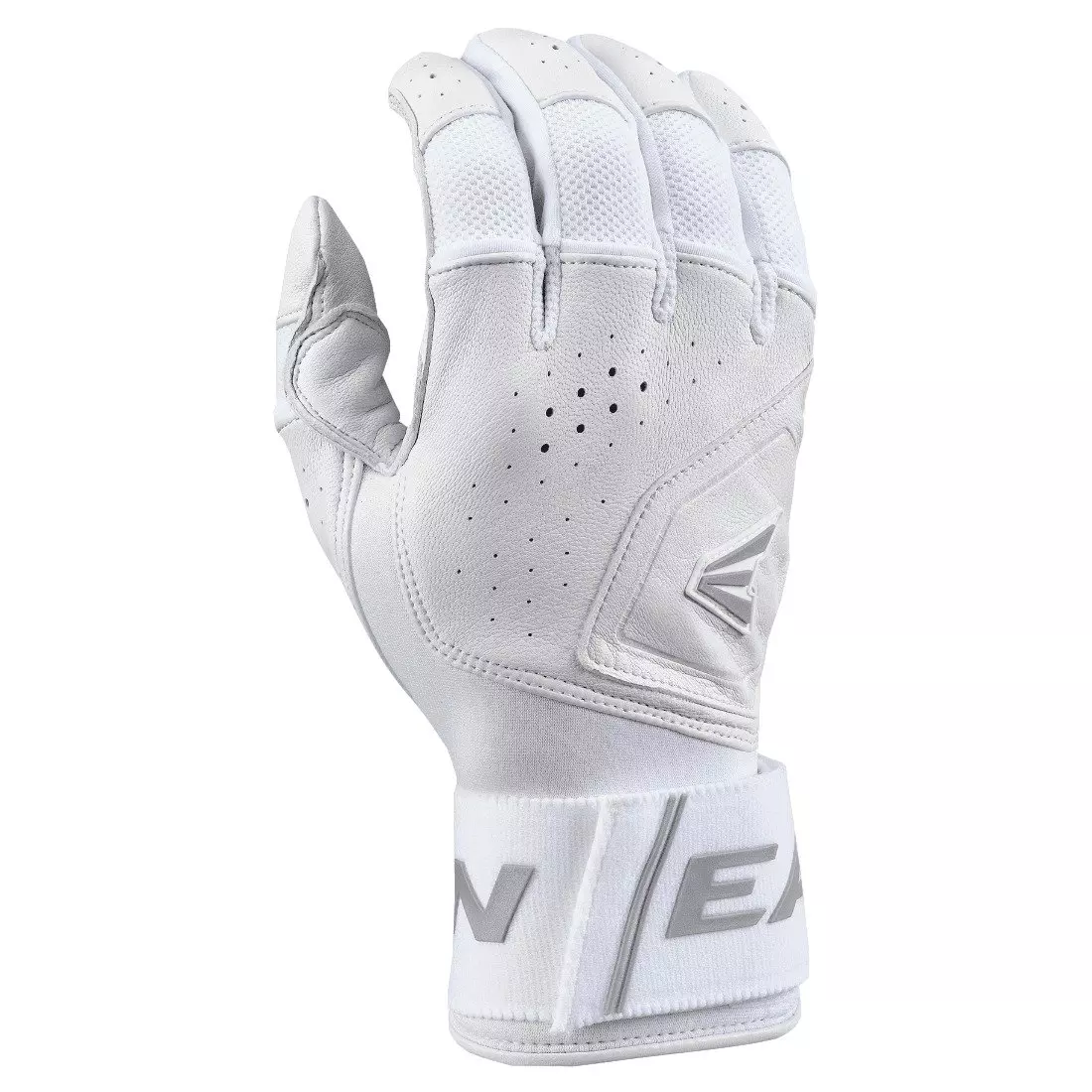 Easton Mav Pro Locked in Baseball Batting Gloves - WhiteElevate your game with the Easton Mav Pro Locked in Baseball Batting Gloves - White, providing ultimate comfort and performance on the baseball diamond. Redesigned for the modern player, these batting gloves feature ultra-soft .9mm professional-grade genuine sheepskin Cabretta leather, covering the palm, back, and fingers for an unparalleled feel. Unlock your full potential with the locked-in design, including an ergonomically designed extended neoprene cuff and a 360-degree wrap elastic strap, providing more leverage and power during every swing. These gloves are engineered for extended wear with a reinforced double layer Cabretta leather palm and thumb, offering extra durability and a professional finish. Stay cool and dry in the heat of the game with the perforated leather and ventilated air mesh, ensuring breathability for maximum comfort. The double-stitched rolled edges and leather binding add to the glove's durability and premium look.