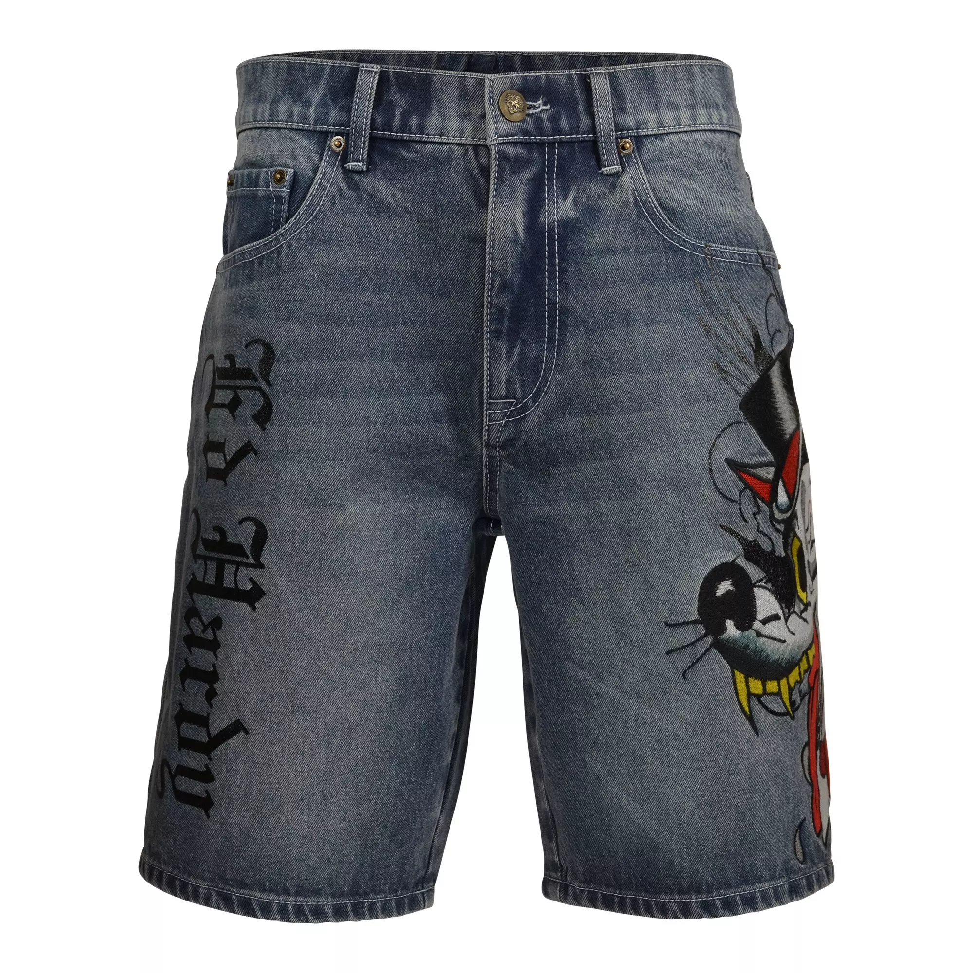 Ed Hardy Men's Crouching Panther Skater Denim Shorts