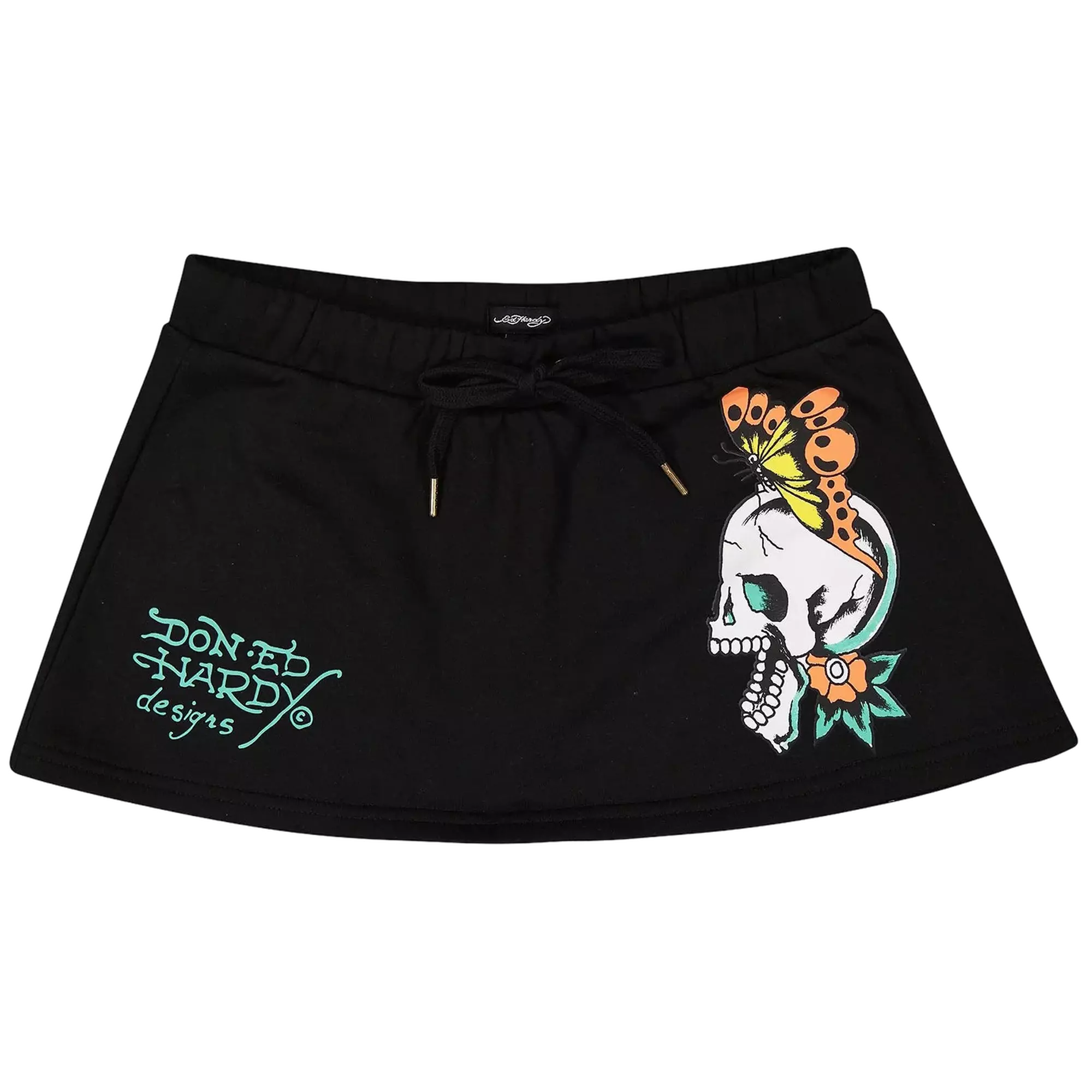 • Ed Hardy Women's Skull Butterfly Fleece Skirt - BLACK