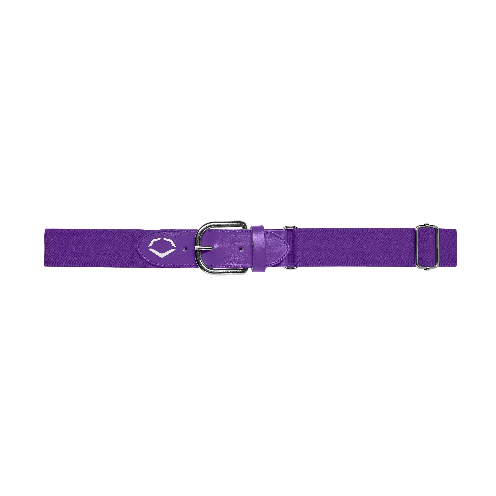 Our EvoShield Adult Elastic Game Belt - Purple uses recycled leather and elastic to keep your uniform comfortably in place during action. The belt measures 1.5" wide and stretches to accommodate most sizes without bulk or slippage.