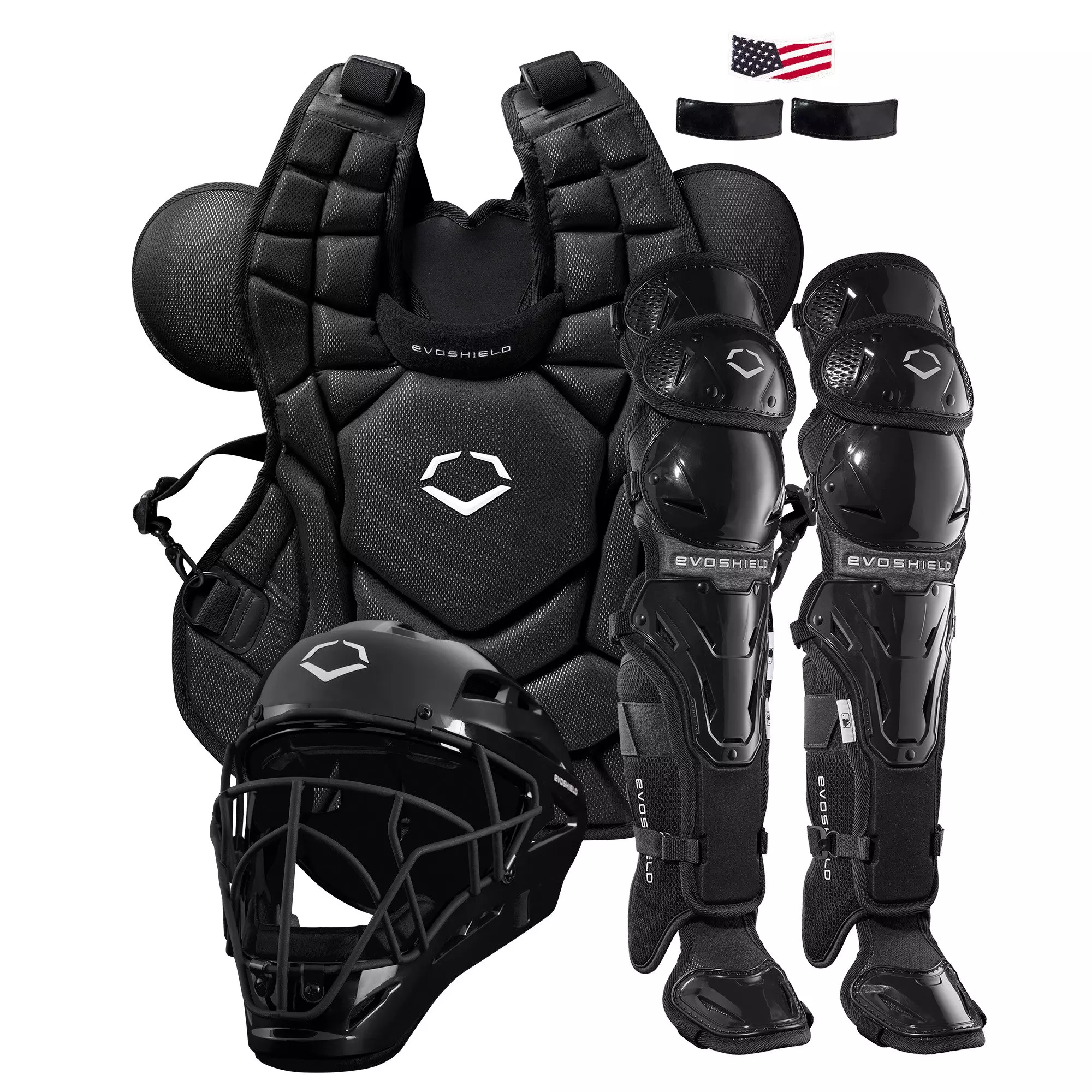 EvoShield G2S Catcher’s Gear Set is engineered for a custom fit with an adjustable two-piece leg guard system and Gel-to-Shell® Technology lower leg guards. The SEI certified chest protector and vented catcher’s helmet are ideal for adults or intermediate players.Features