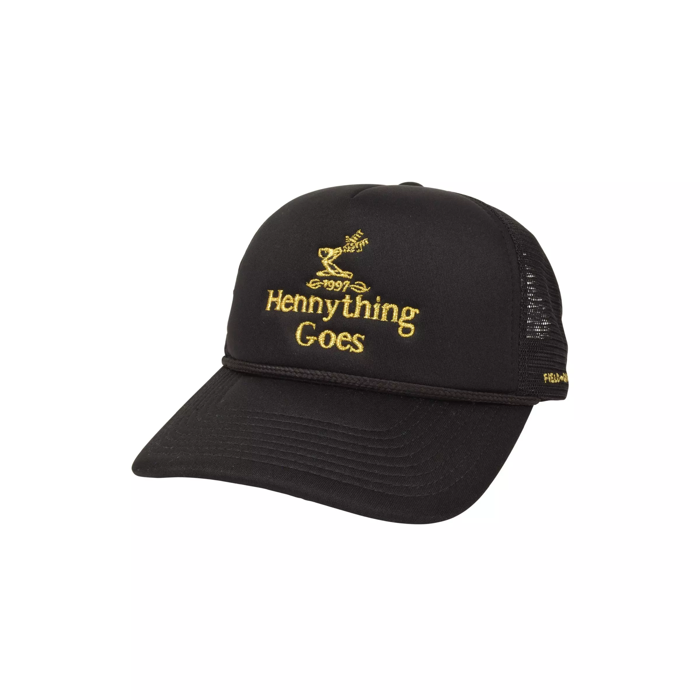 Upgrade your hat collection and add some flavor to your outfit with this Field Grade Hennything Goes Trucker Snapback-Black! Some times a pop of color isn't enough, so Field Grade brings that same, bold pop with a message!Features