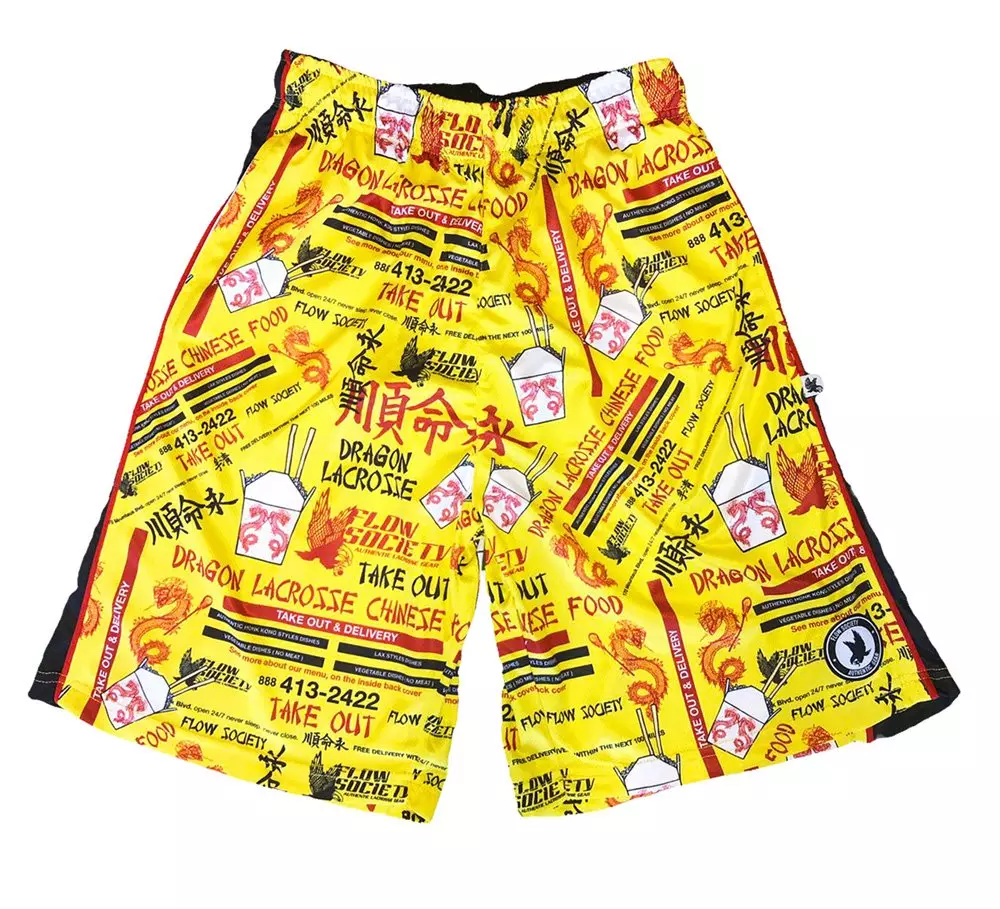 These yellow Flow Society Big Boys' Chinese Take Out Attack Shorts are a creative and edgy alternative to all the basic boring black shorts out in the world. Make a statement and stand out! Channeling the flow that true athletes understand. Defining the flow that powers athletes everywhere. Take your look to the next level in these boys lacrosse shorts vibrant colors and unique pattern for the ultimate fresh look.Features
