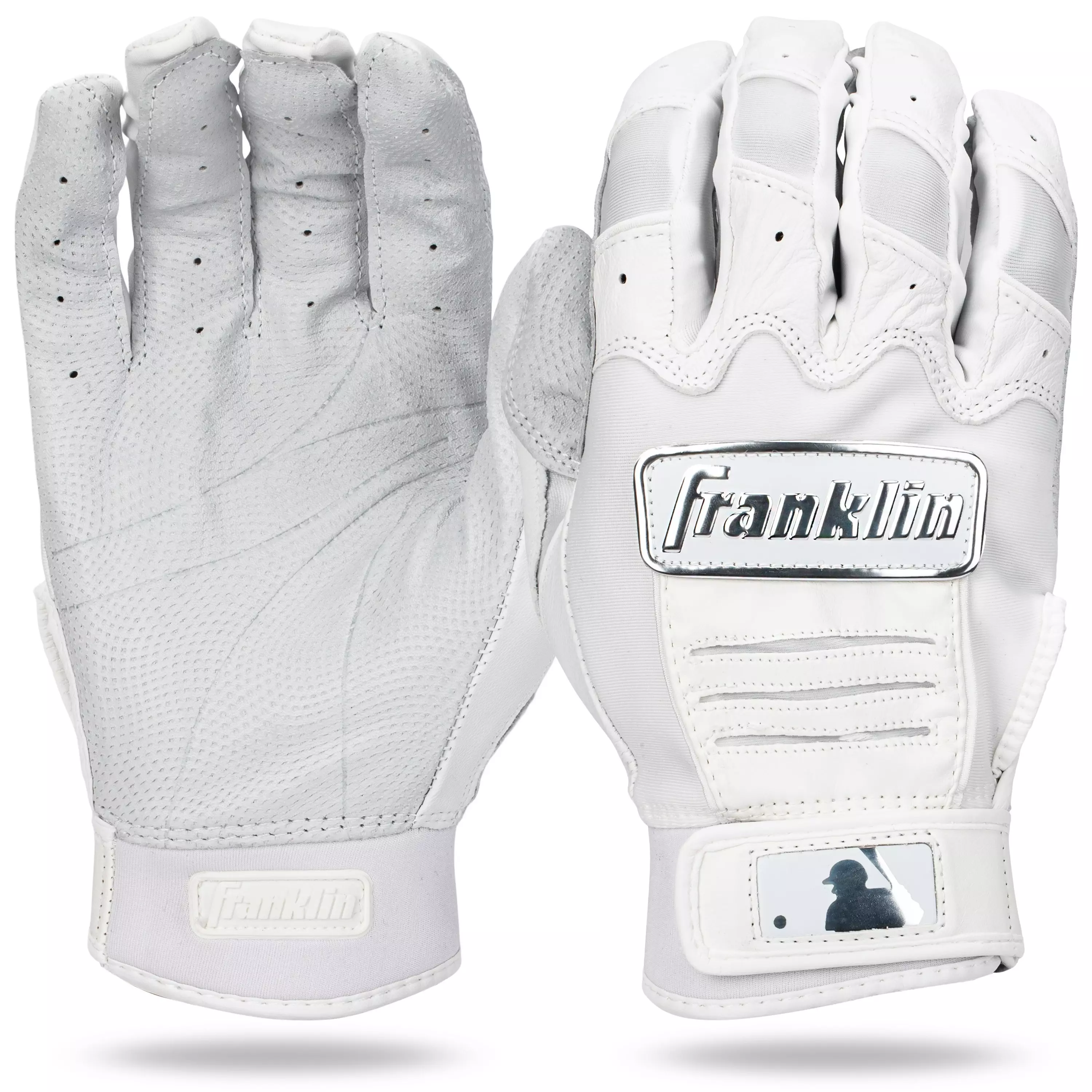 The Franklin Youth CFX Pro White Batting Gloves - Medium remain the most popular on-field model. They deliver a superior feel and feature unique tectonic-fit insert flexibility. The one-piece premium Digital Cabretta leather palm retains softness and grip in all conditions.
