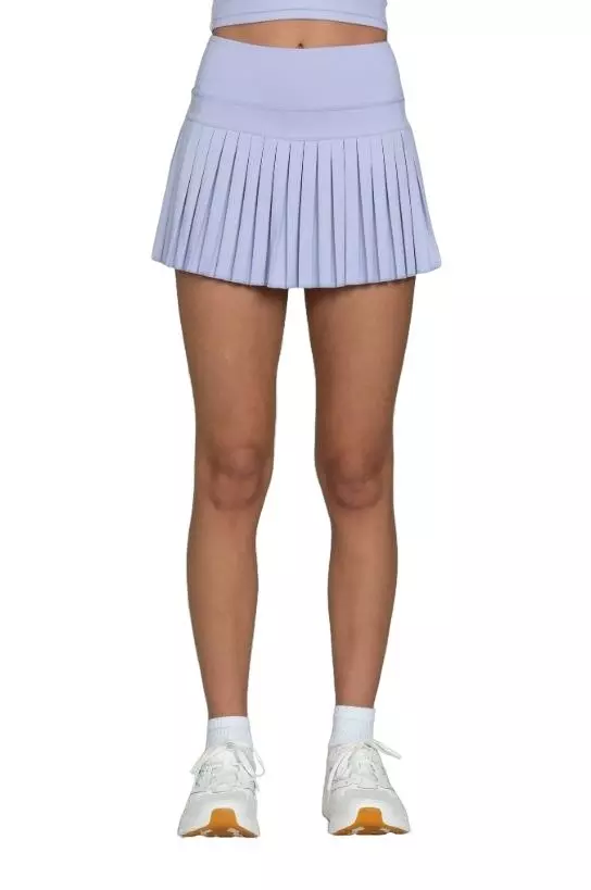 This high-waisted pleated skirt blends sporty style with everyday elegance. The Gold Hinge Women's Pleated Skirt - Lavender features built-in spandex shorts that ensure smooth coverage and unrestricted movement. Soft polyester blend retains shape and color through repeated wear.