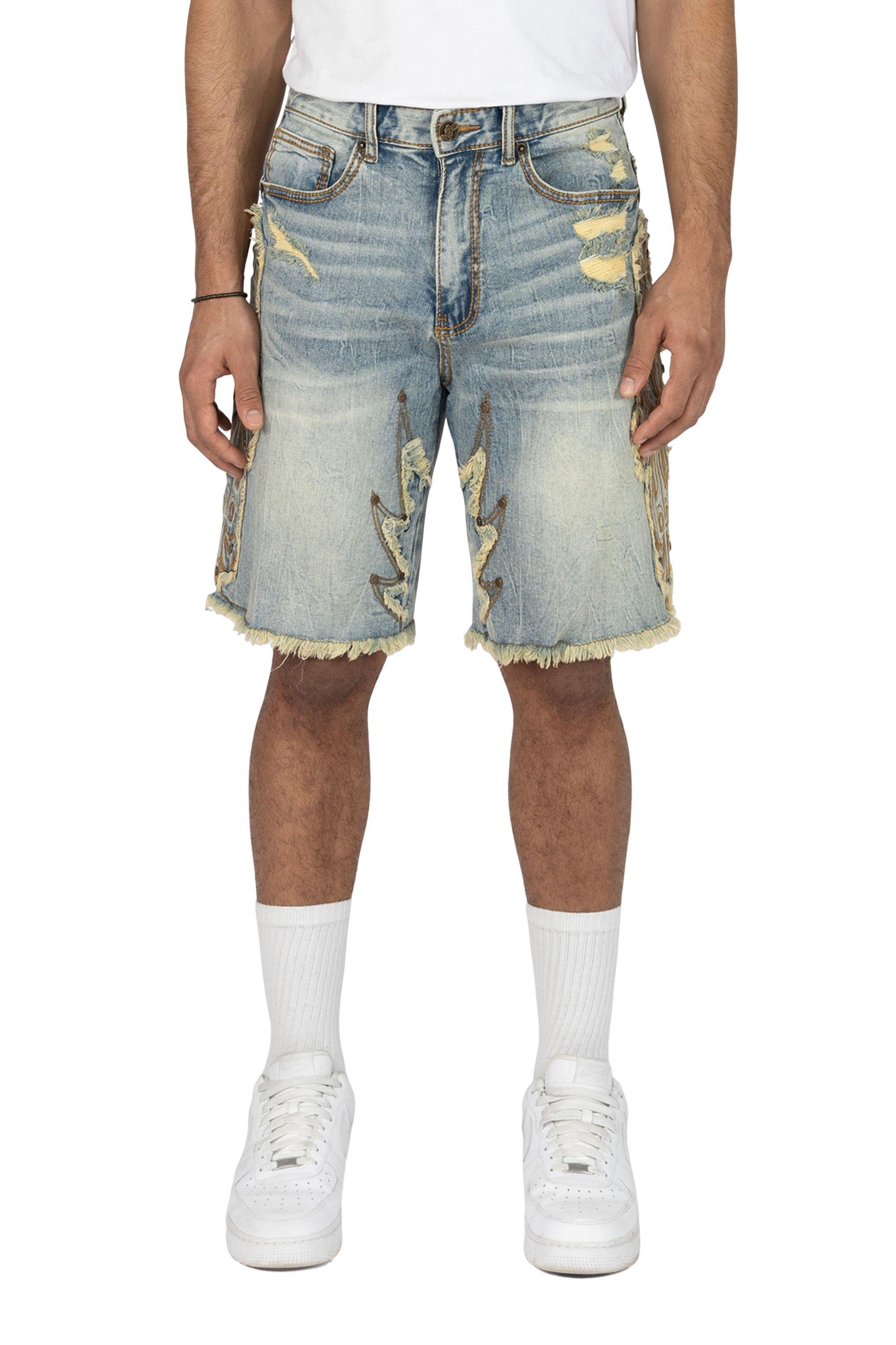 Grindhouse Men's Lucca Blue Western Detail Denim Shorts are a no-competition garment with workable durability and an unmistakable spirit of revolution against the norm, guaranteeing them to outlive any passing trend.Features