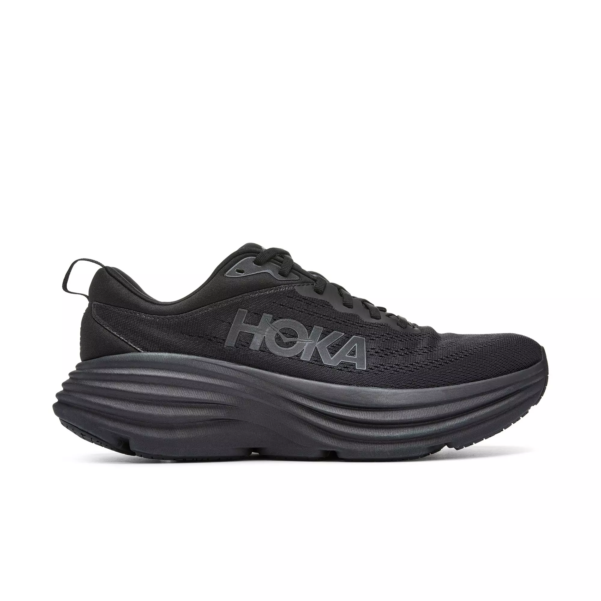 The ultra-cushioned game-changer. One of the hardest working shoes in the HOKA lineup, the HOKA Bondi 8 Wide "Black" Men's Running Shoe takes a bold step forward this season reworked with softer, lighter foams and a brand-new extended heel geometry. Taking on a billowed effect, the rear crash pad affords an incredibly soft and balanced ride from heel strike to forefoot transaction.Features
