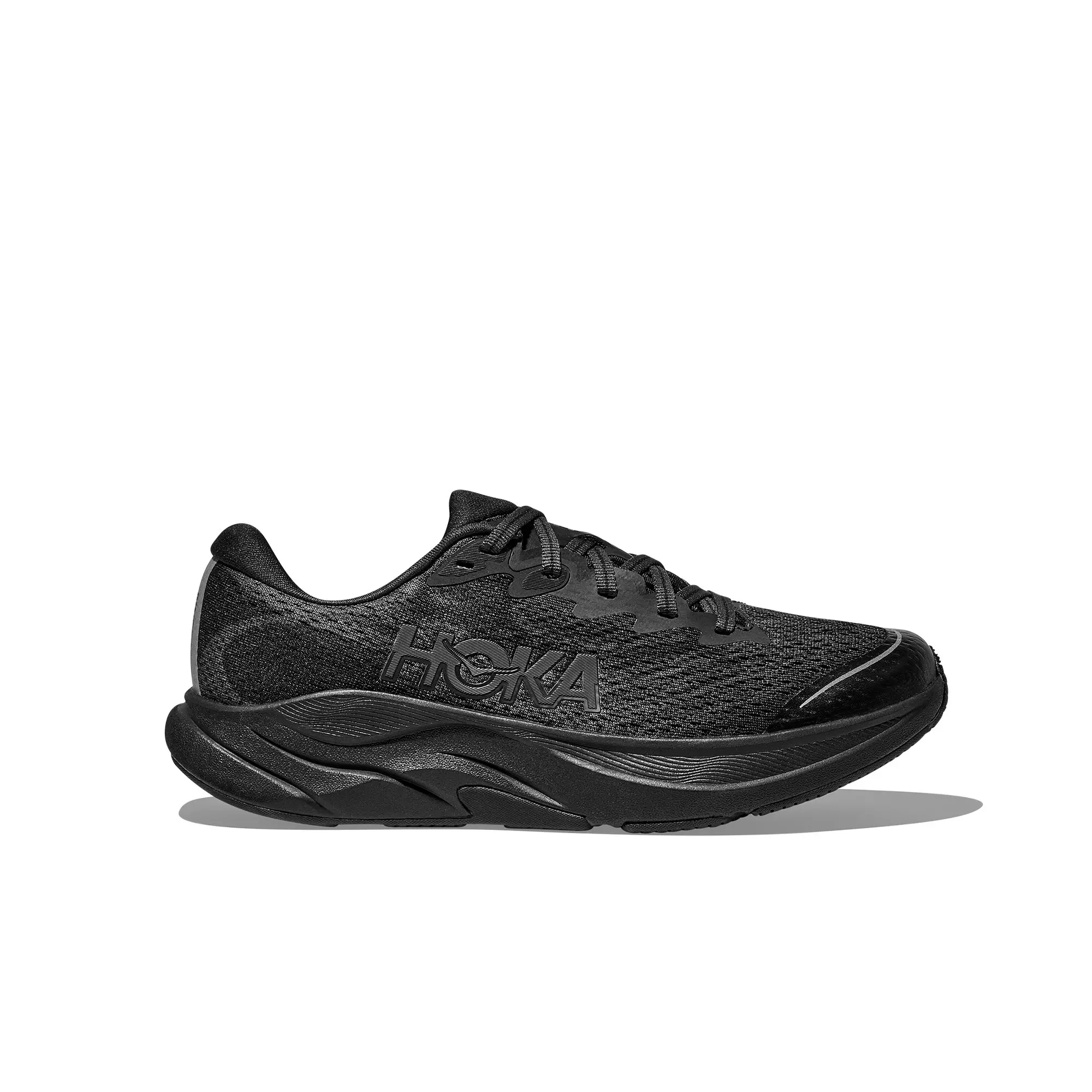 The Hoka Rincon 4 "Black/Black" Grade School Boys' Running Shoe keeps up with busy kids thanks to a breathable, foot-hugging mesh upper, a durable toe cap, and a recess-ready rubber outsole. Reflective accents help little athletes stand out in low light.