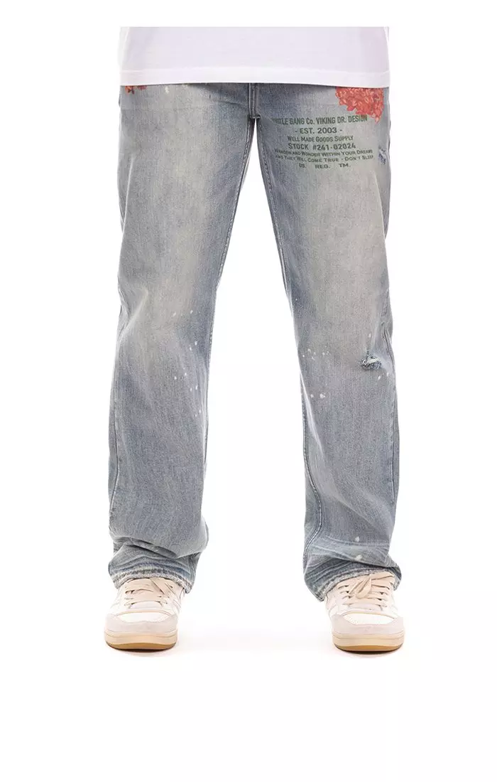Stay sharp in the Hustle Gang Men's First Frost Relaxed Fit Light Wash Denim Jeans, crafted for everyday wear with a laid-back silhouette. The light wash delivers a broken-in look, while the relaxed fit provides room to move without feeling baggy.