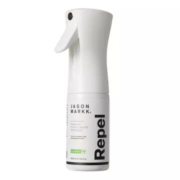 Jason Markk Repel Protectant Spray uses a water-based formula that is VOC-free and excludes PFAS, PFOA and PFCs. It creates a durable barrier that repels liquids and dirt on shoes, apparel and bags, leather, suede, canvas and mesh, excluding unsealed and vegetable tanned leather. This non-aerosol spray delivers a continuous fine mist covering large areas quickly and evenly.