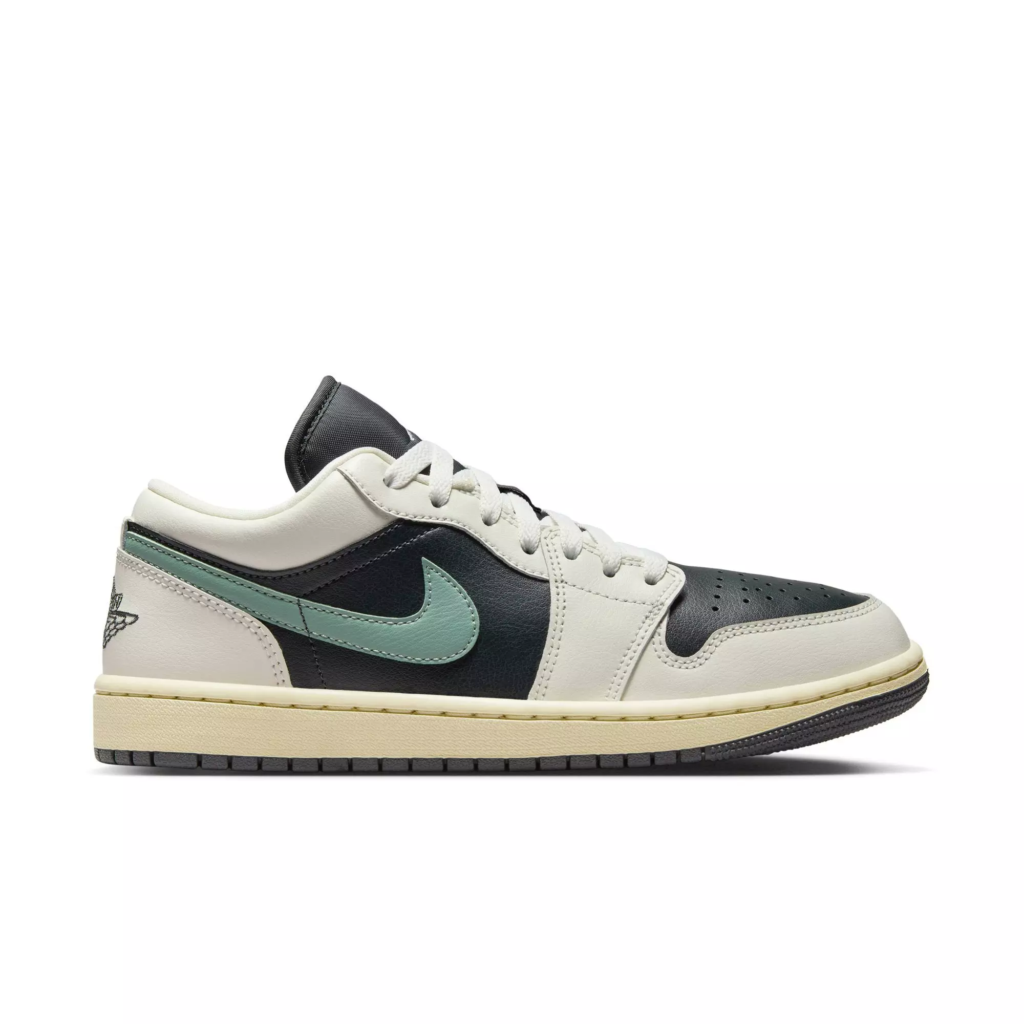 Always in, Always fresh. The Jordan 1 Low "Anthracite/Jade Smoke/Sail/Legend Sand" Women's Shoe sets you up with a piece of Jordan history and heritage that's comfortable all day. Choose your colors, then step out in the iconic profile that's built with a high-end mix of materials and encapsulated Air in the heel.