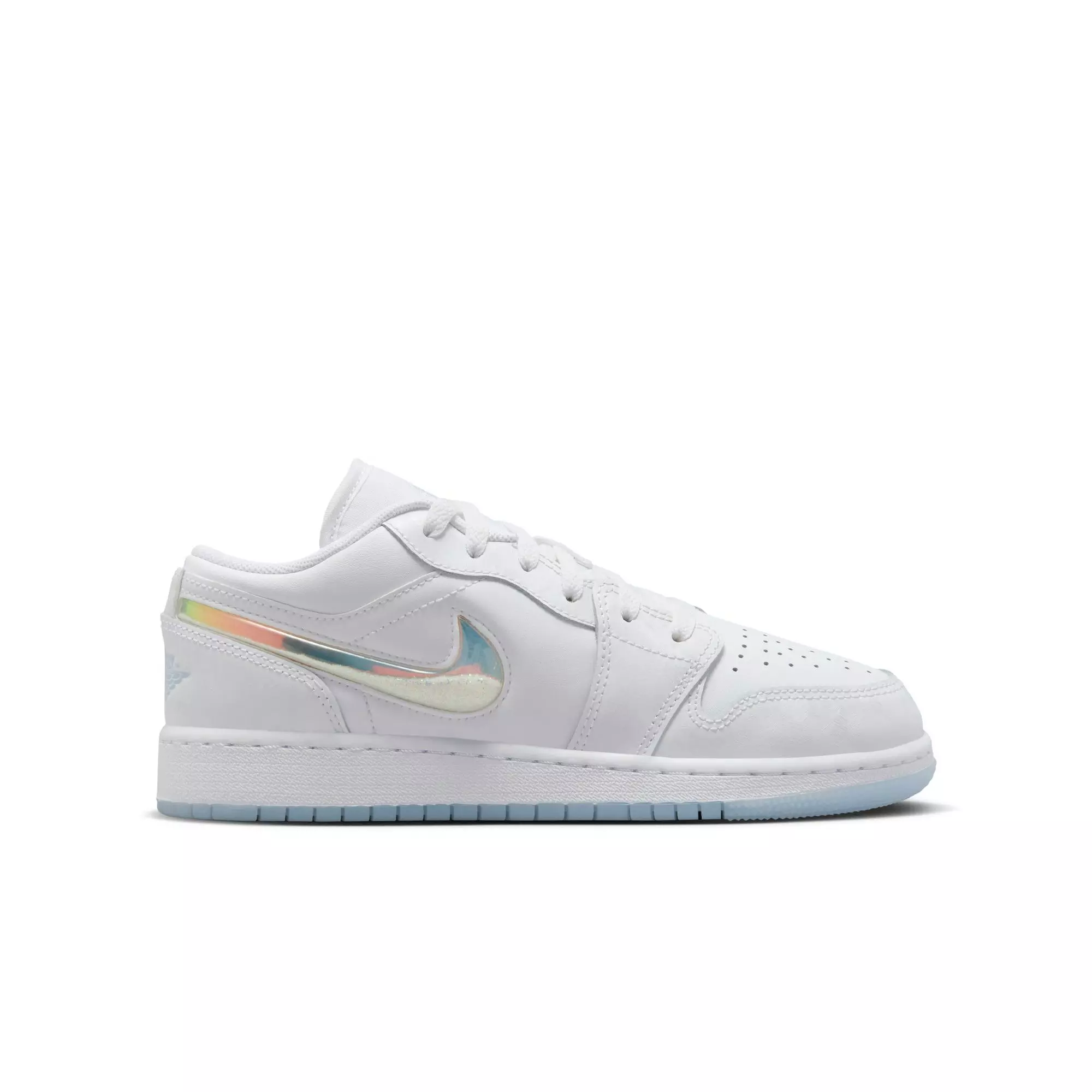 What's that cool breeze comin' in? Oh, it's you in those icy fly Jordan 1 Low "Frozen" Grade School Girls' Shoe! These season-ready kicks come with a bevy of special, wintery details: iced clear outsole, 'frozen' textured leather overlays, and that glitter filled Swoosh inspired by the always mesmerizing snow globe. Shake up your winter look.Read the full History of Air Jordan to learn more about MJ's legacy.