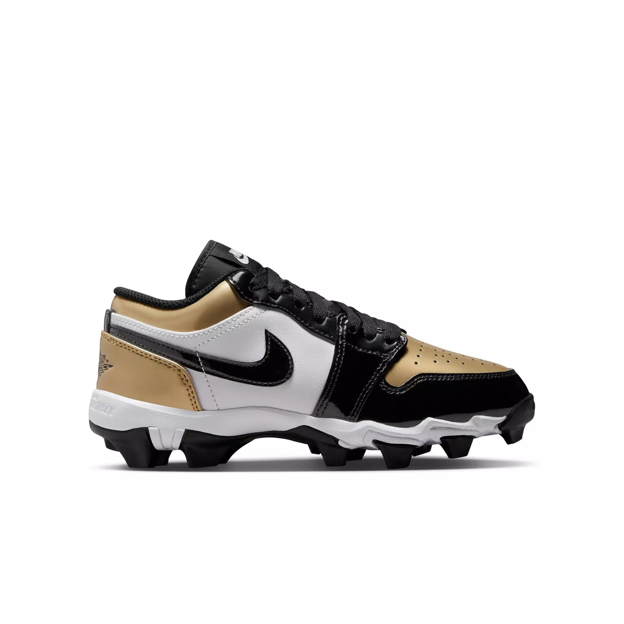 No matter what game you're playing, the Jordan 1 Low "Metallic Gold/Black/White" Preschool Boys' Football Cleat is here to help give you a little extra edge on the field. Its wide stud placement helps you cut fast while external pods deliver optimal traction for quick pivots. Plus, its durable design is ideal for whatever activity you choose.Features