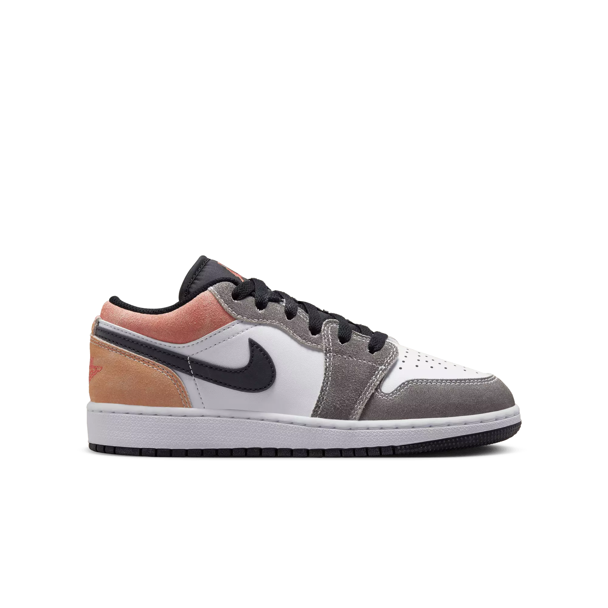 Get into some summery fun in your new fave Jordan 1 Low SE "Black/Sundial/Magic Ember/White" Grade School Boys' Shoe. Made with a combination of suede and canvas, this pair gives you the comfort you know and love with a seasonal update.Features