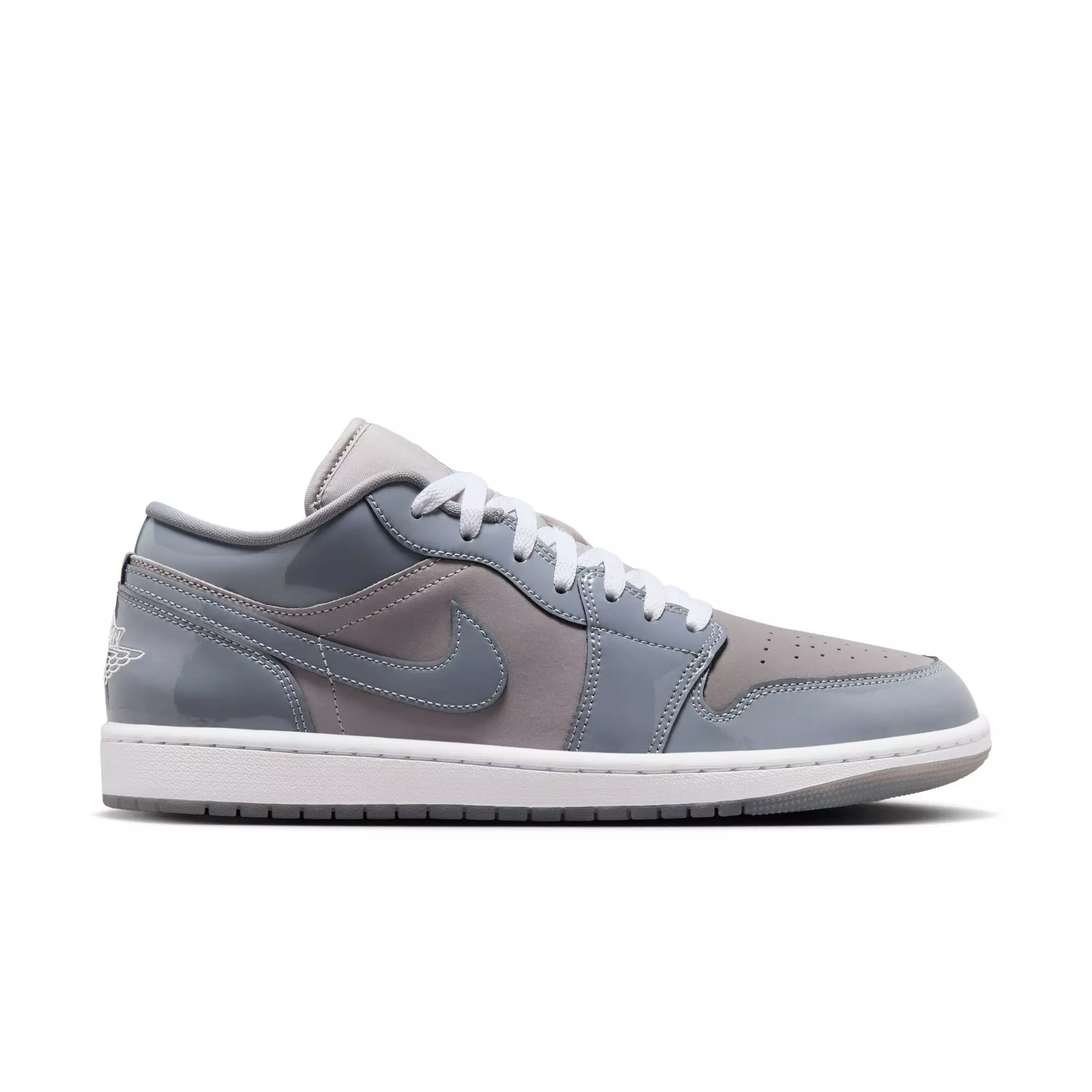 Embrace a new energy with the tonal Jordan 1 Low SE "Medium Grey/Cool Grey/White" Men's Shoe. Crafted from premium smooth patent leather, this low-top blends elevated style with classic cushioning to deliver lasting comfort and quality wear.