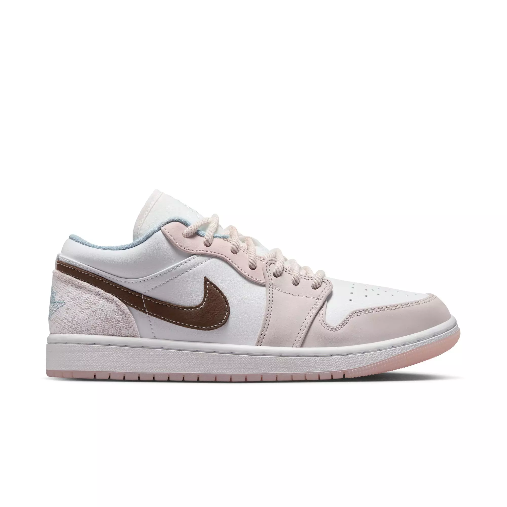 Always fresh, always in-season. The Jordan 1 Low "White/Ironstone/Light Soft Pink" Women's Shoe is a wearable piece of Jordan history, with premium materials and a classic silhouette. This pair serves up a subtle lace on the heel plus Nike Air cushioning as the cherry on top (er, bottom).Read the full History of Air Jordan to learn more about MJ's legacy.