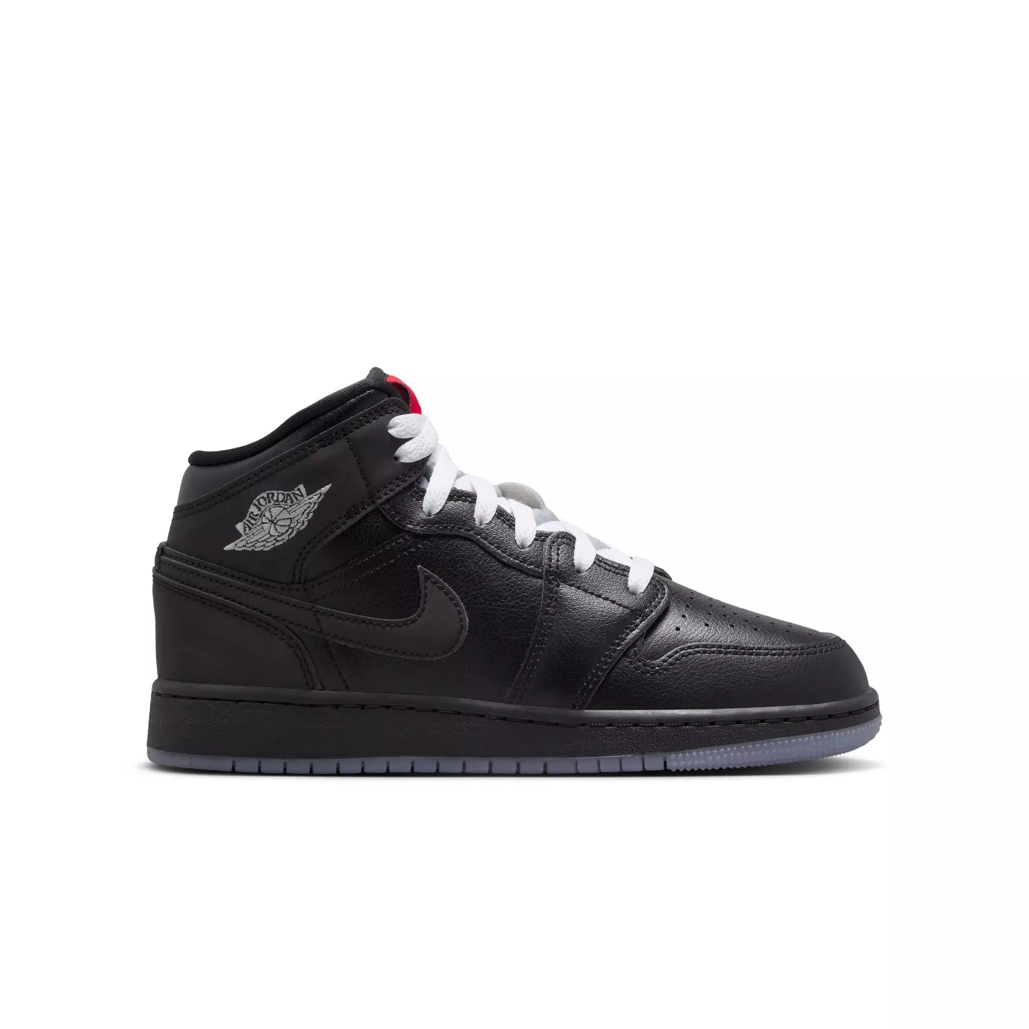 Jordan 1 Mid "Black/White/Wolf Grey" Grade School Boys' Shoe