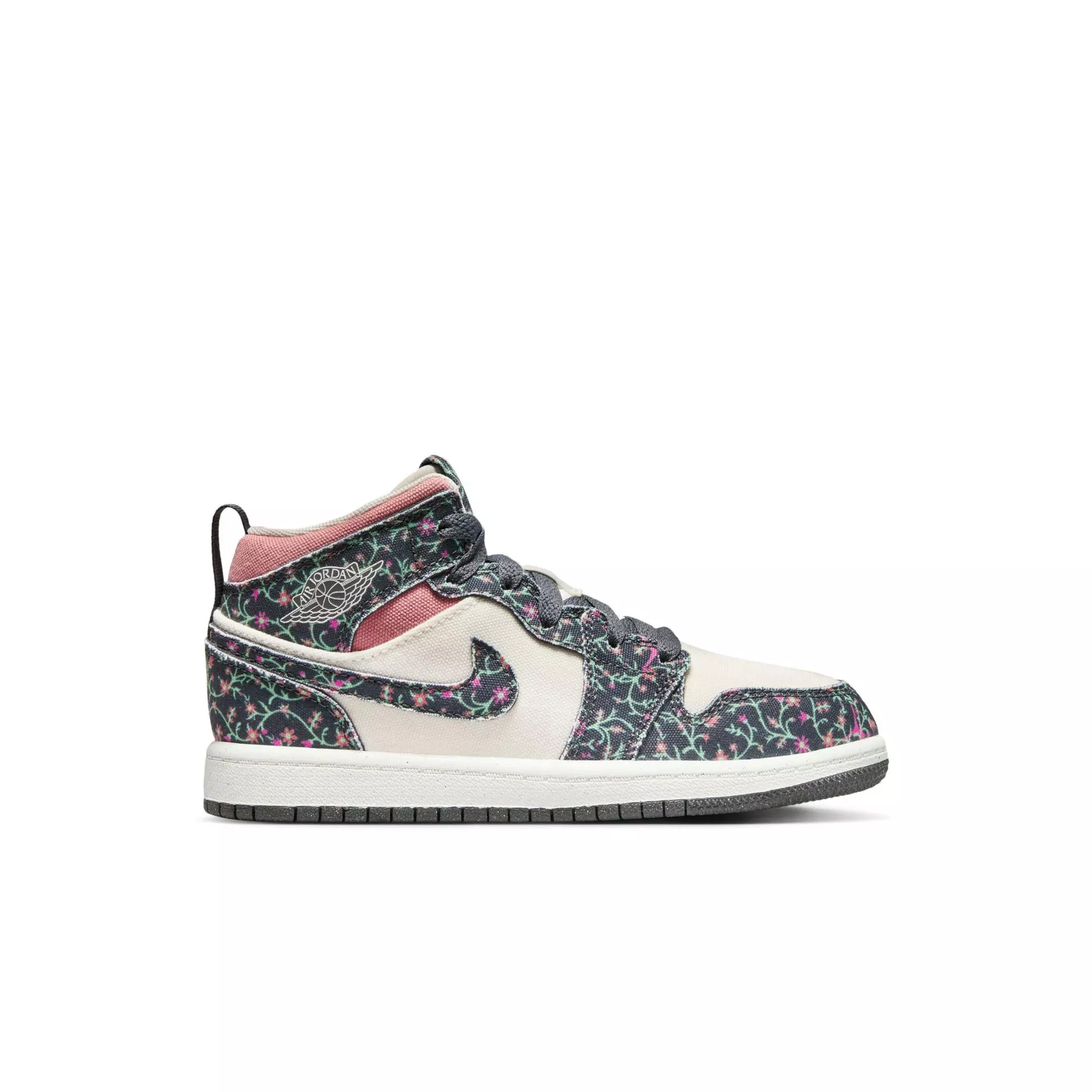 Even the Greatest Of All Time has to listen to his mom. Inspired by the wallpaper in his parents' house, these Jordan 1 Mid SE "Anthracite/Sail/Red Stardust" Preschool Girls' Shoe have a floral print to celebrate Mrs. Jordan's love and dedication to MJ. The adults in your life might have rules, but they also can inspire some amazing drip. So you know, listen to them. Read the full History of Air Jordan to learn more about MJ's legacy.Features