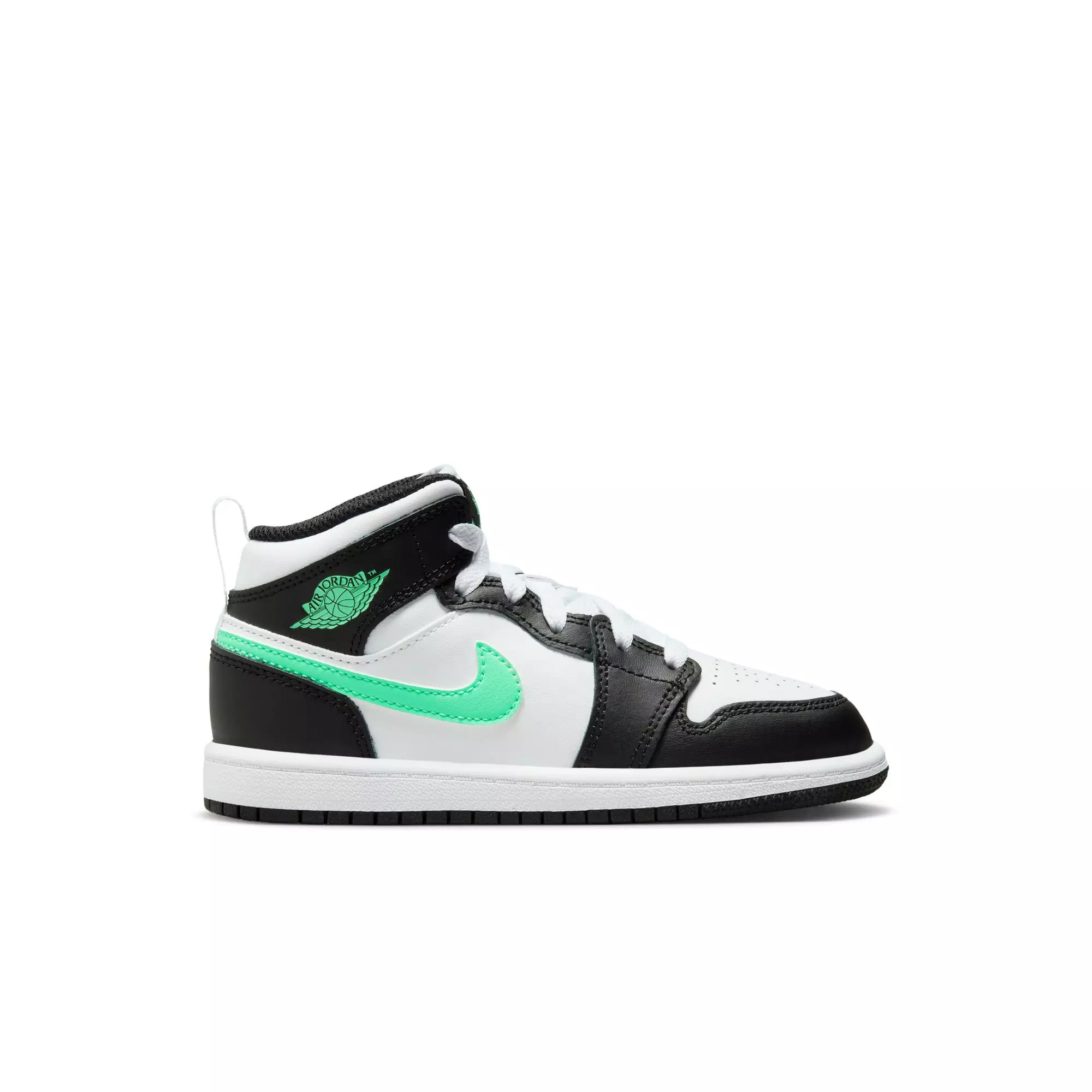 • Jordan 1 Mid "White/Green Glow/Black" Preschool Boys' Shoe - WHITE/BLACK/GREEN