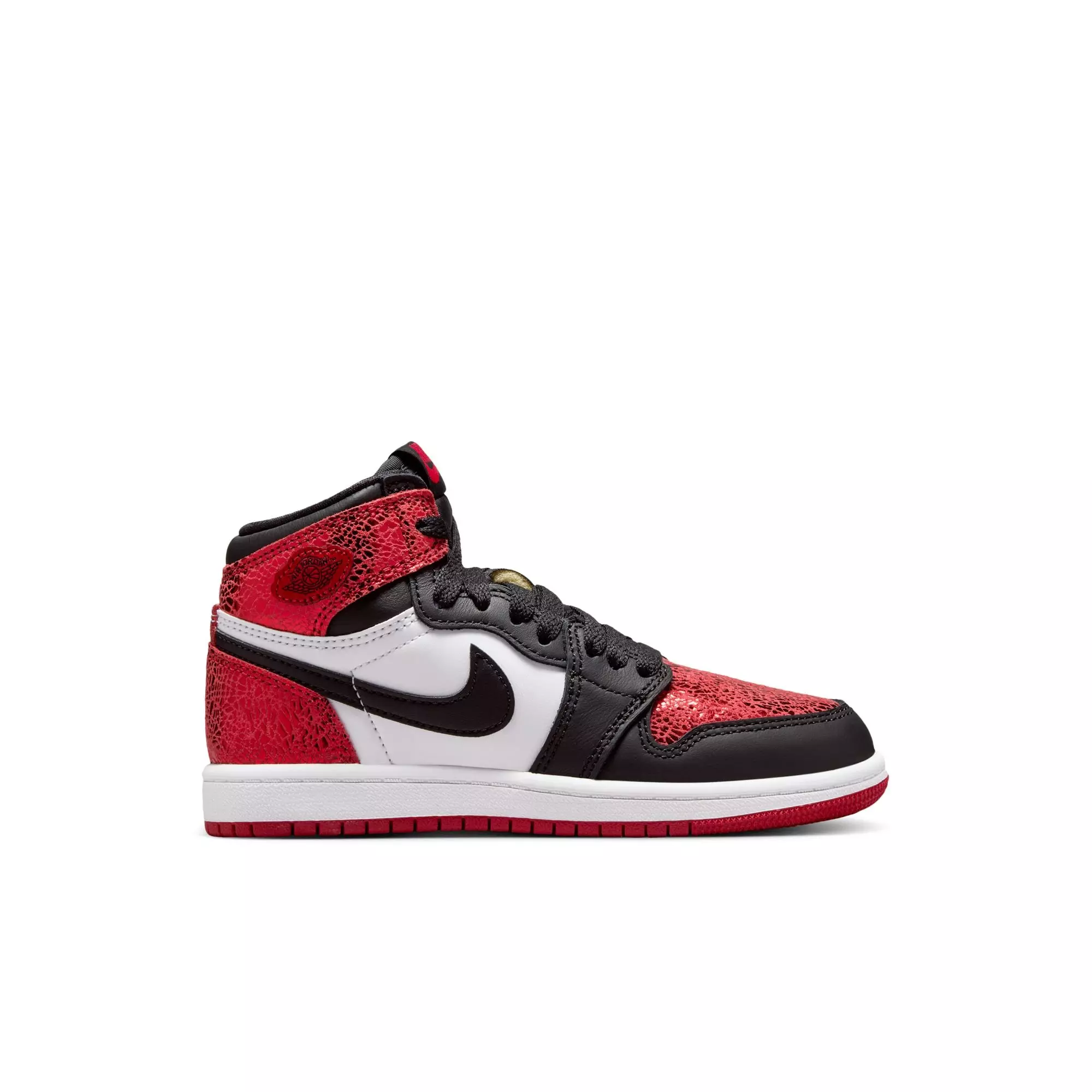 This Jordan 1 Retro High OG "Varsity Red" Preschool Girl's Shoe delivers A+ energy and team-ready style. Its bold red and white palette stands out on every step, while durable construction withstands active days.