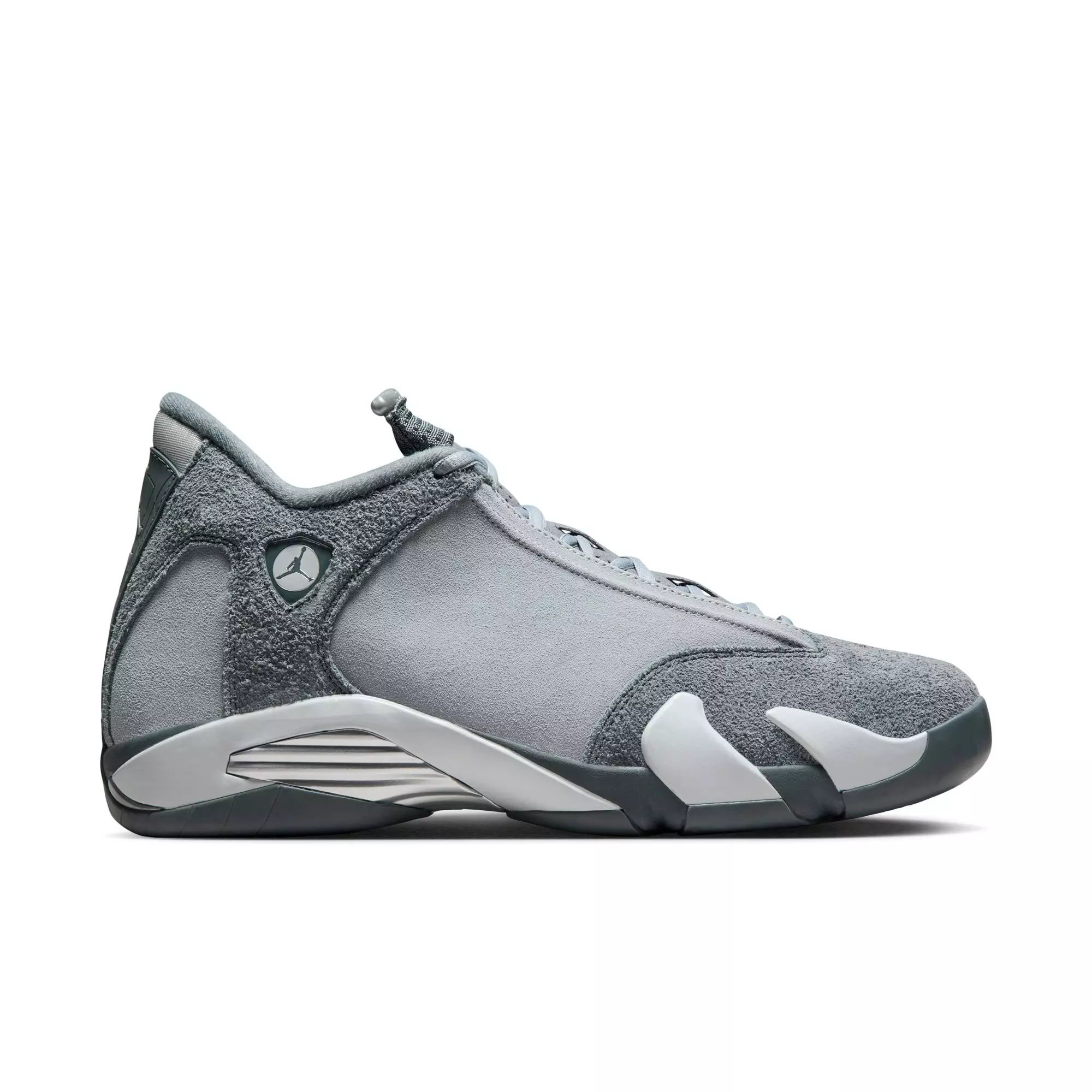 25 years on and the AJ14 is still a sleek and sporty wonder. To celebrate that milestone, we've created the Jordan 14 Retro "Flint Grey" Men's Shoe with a premium, textured take. The design details are still there, from the "teeth" on the midsole to the sports car-inspired crest—and you know we kept all the Jumpman logos (a total of 7 on each shoe).