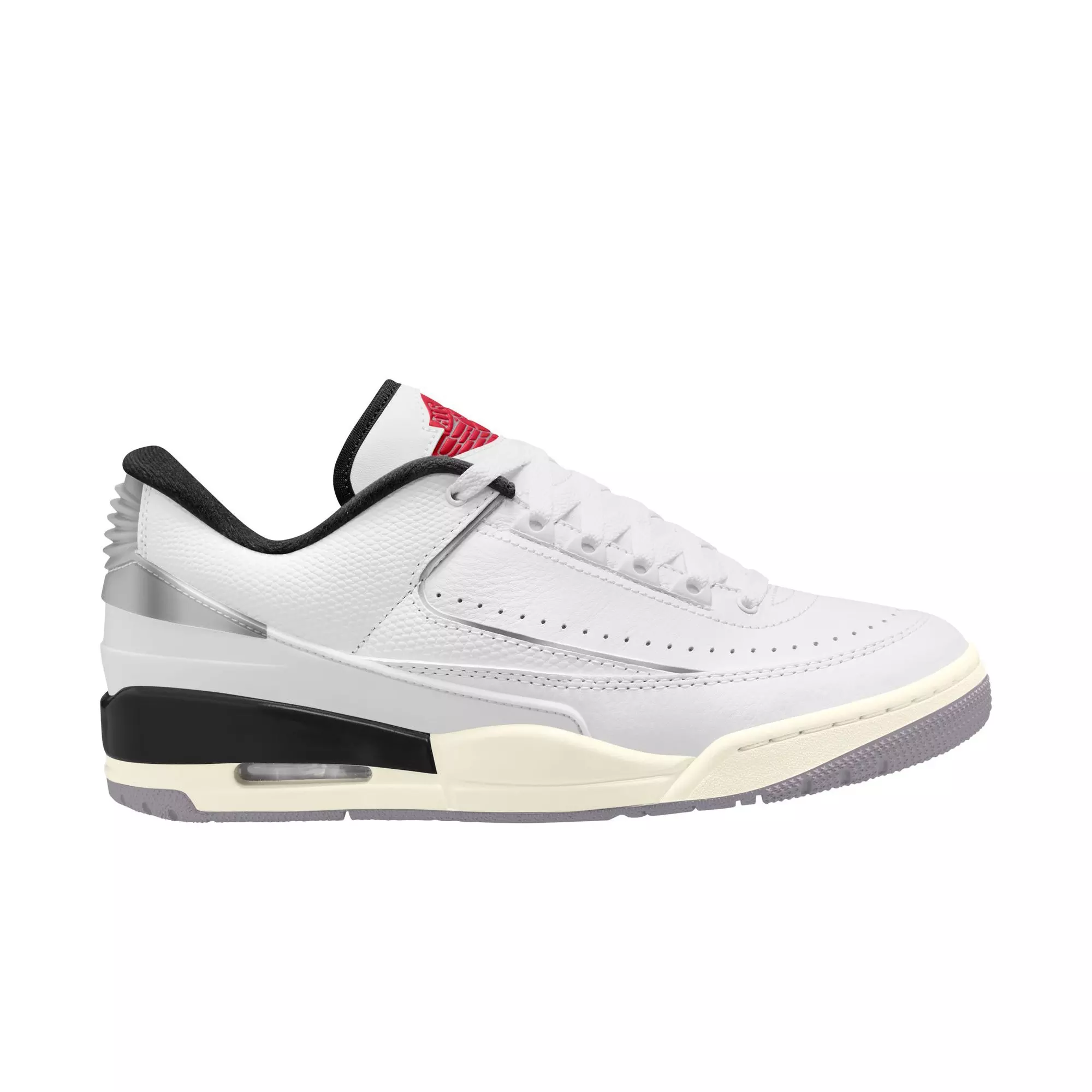 The Jordan 2/3 "White/Fire Red/Cement Grey/Sail" Men's Shoe blends AJ2’s refined upper elements with AJ3’s iconic sole. Premium leather and synthetic overlays add a luxe touch and an elevated appeal to everyday wear.