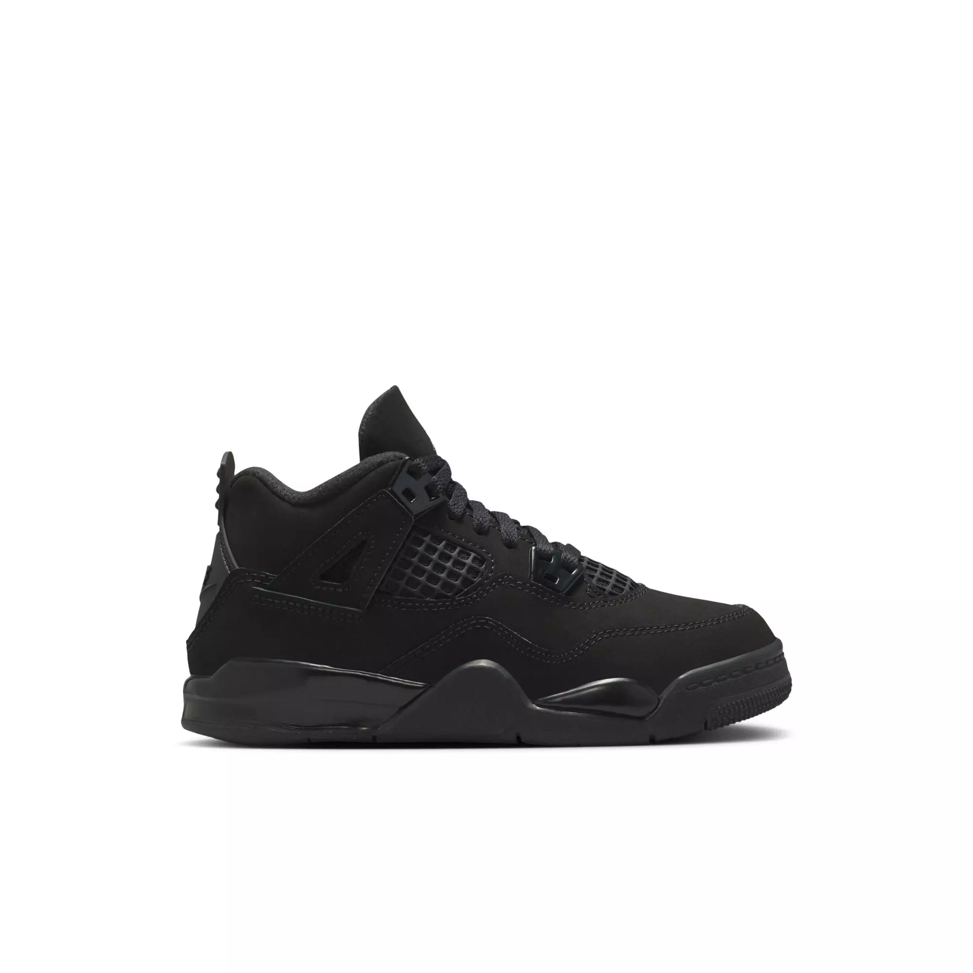 Give them iconic style with the Jordan 4 Retro "Black Cat" Preschool Kids' Shoe. Soft nubuck and suede uppers deliver a plush feel and a luxe, all-black look that pairs with anything.