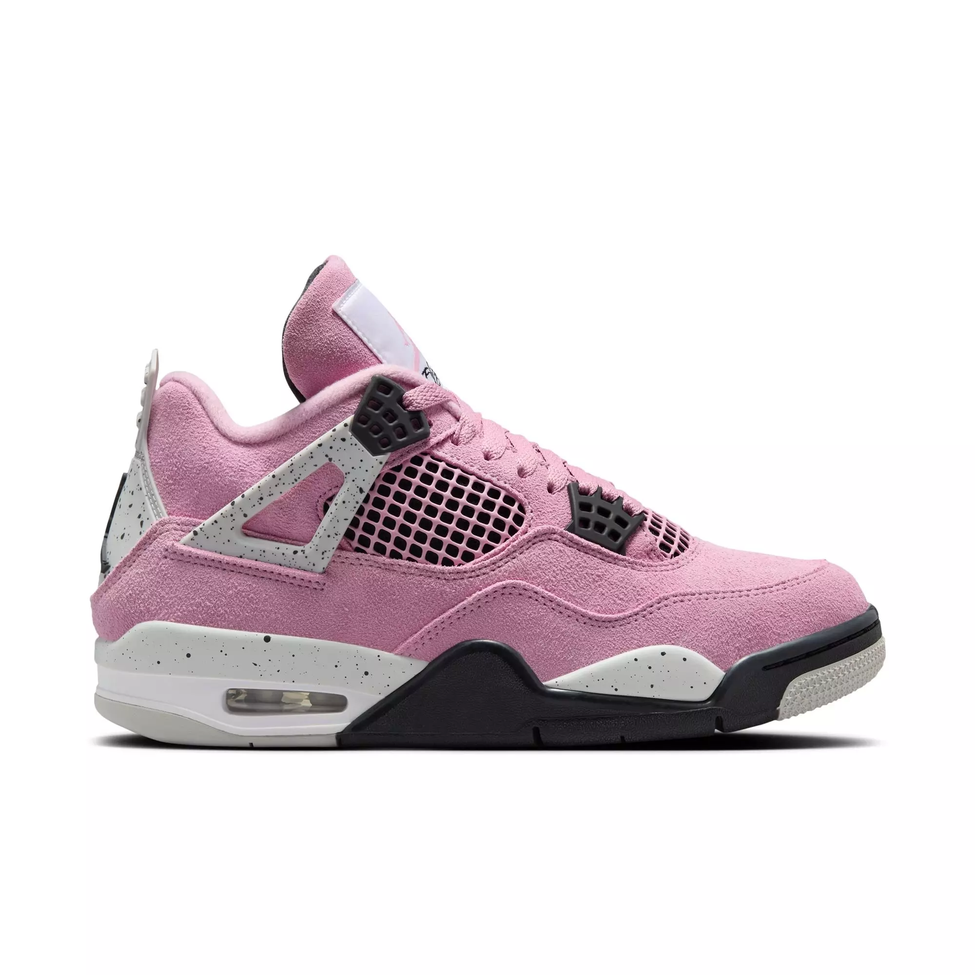 The Women's AJ4 "Orchid" showcases a unique blend of suede, grey cement details, and pink accents. Enter our raffle for a chance to win a pair on 10/26.