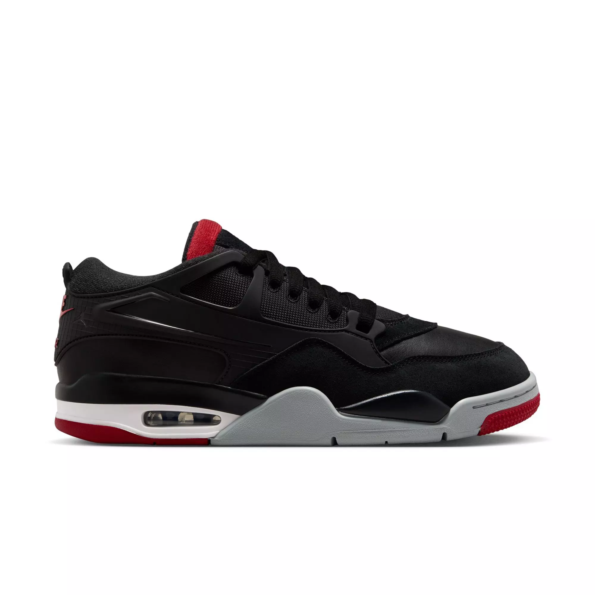 The Jordan 4 RM "Black/Varsity Red/Wolf Grey/White" Men's Shoe reimagines the instantly recognizable AJ4 silhouette while adding lasting comfort and durability. It features Max Air technology in the heel, delivering responsive cushioning on every step.
