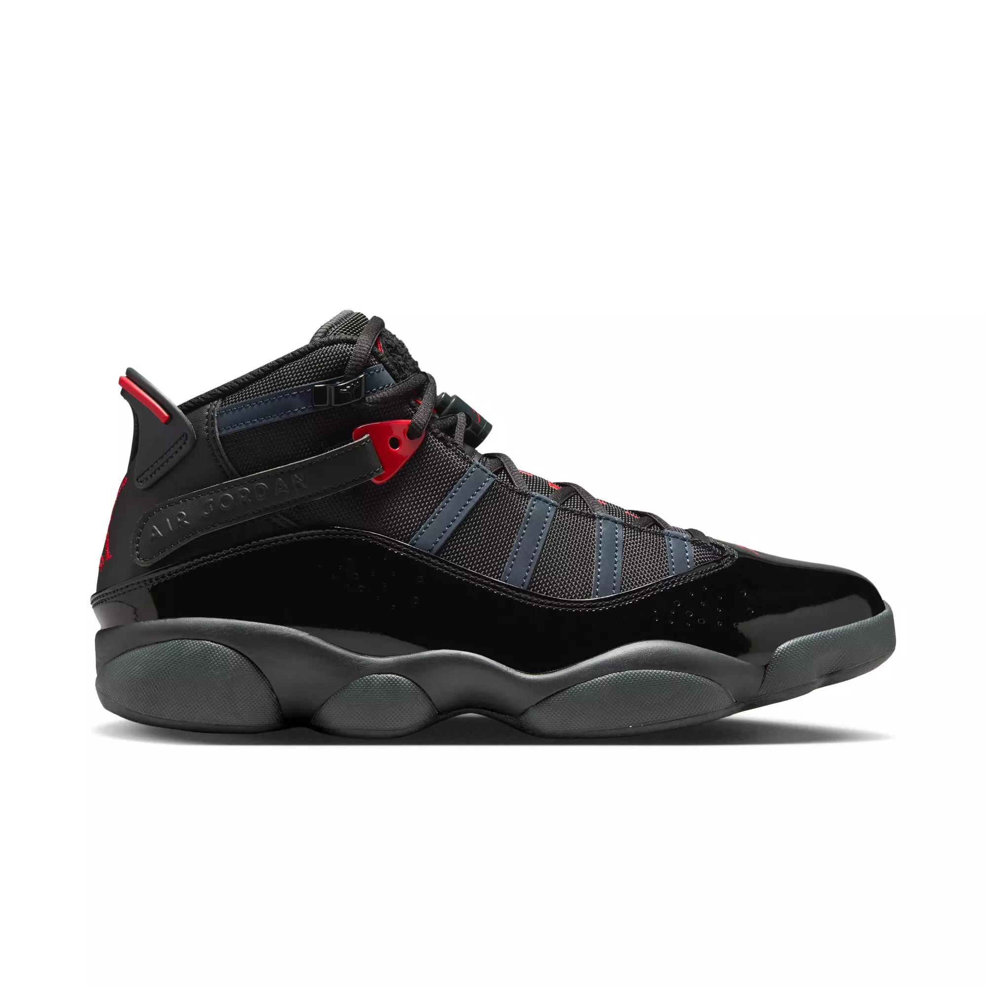 Celebrate the legendary career of "His Airness" with the Jordan 6 Rings "Black/Fire Red/Anthracite" Men's Shoe. It incorporates key features from each championship shoe and adds premium details alongside a lightweight, low-profile Zoom Air cushioning system that delivers a responsive feel underfoot.