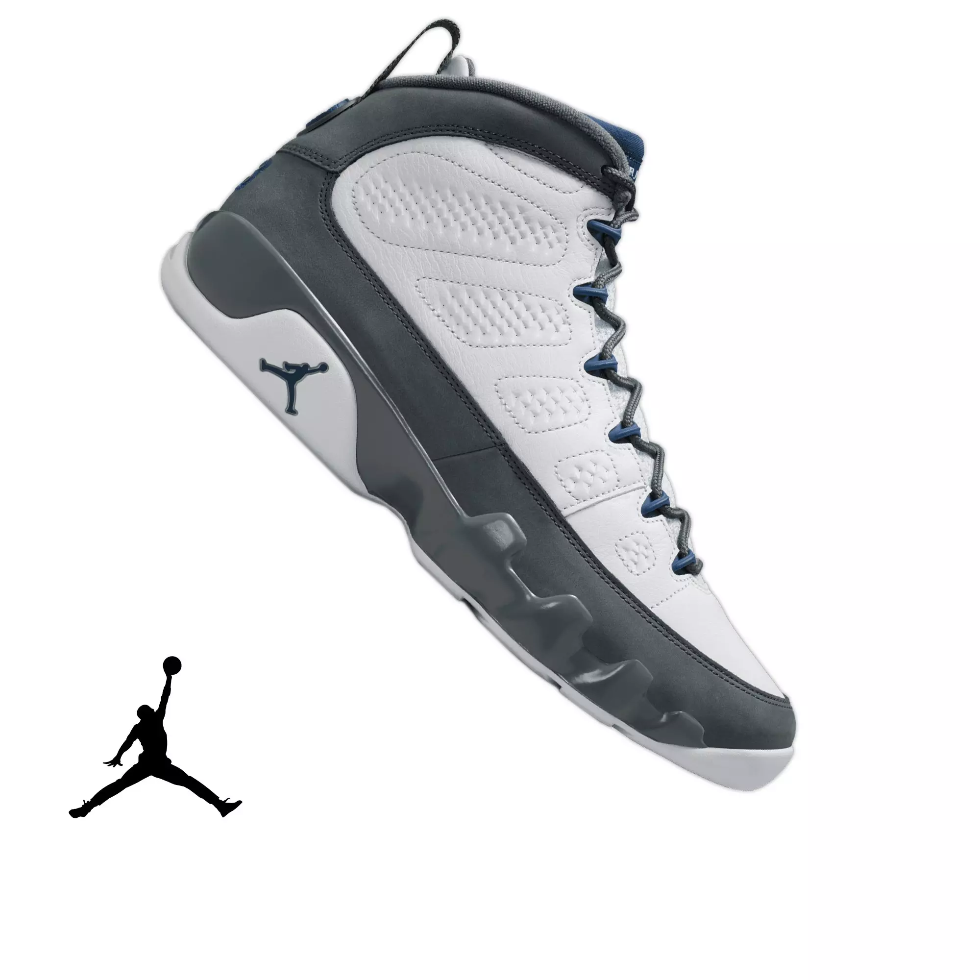 • Jordan 9 Retro "Flint Grey" Men's Shoe - WHITE/FRENCH BLUE/FLINT GREY